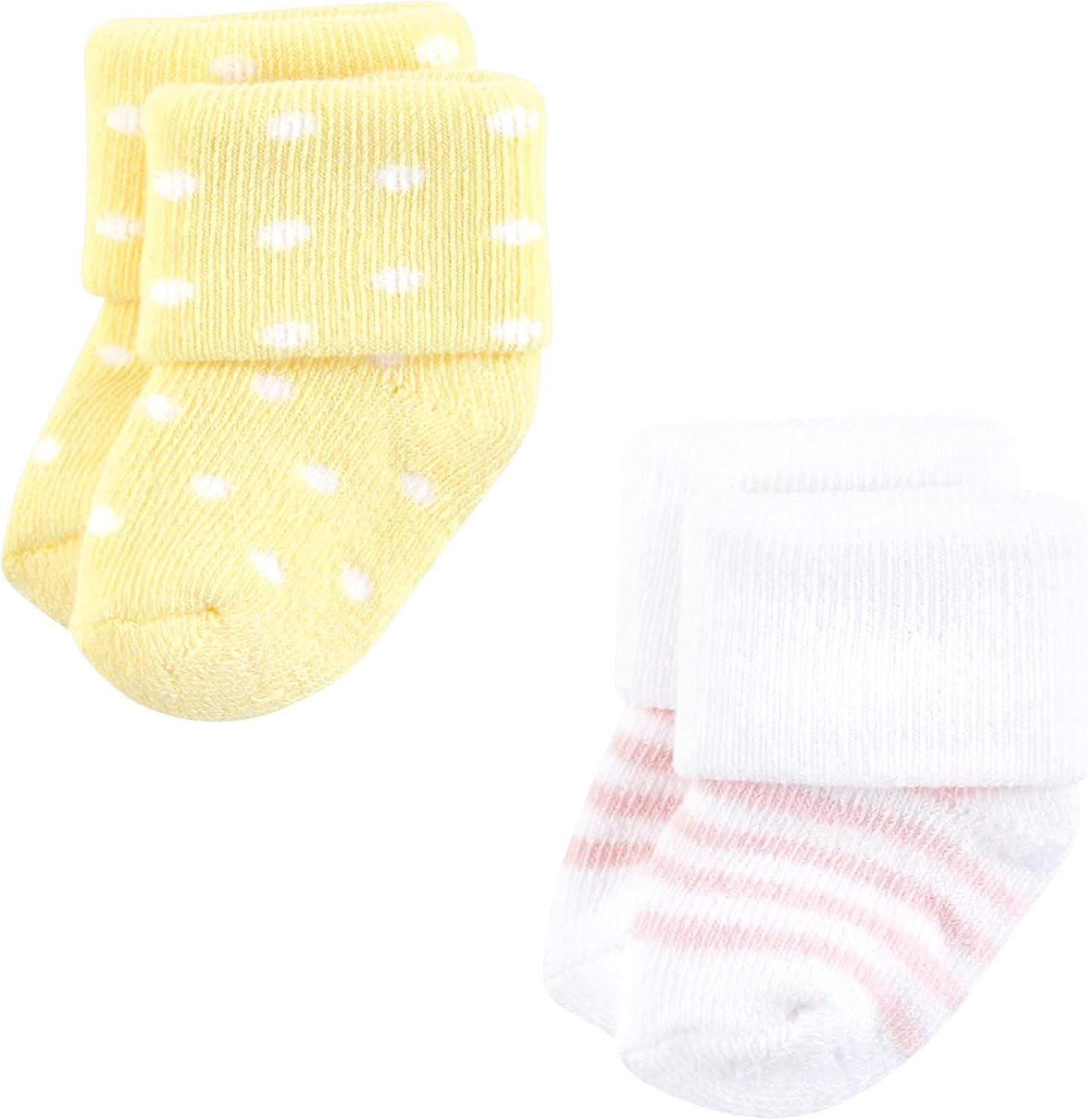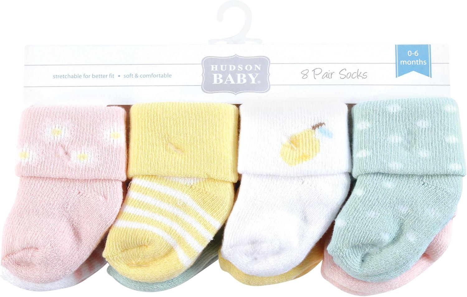 Hudson Baby Unisex Baby Cotton Rich Newborn and Terry Socks, Blue Sage Stripe, 0-6 Months(Lemon Daisy)