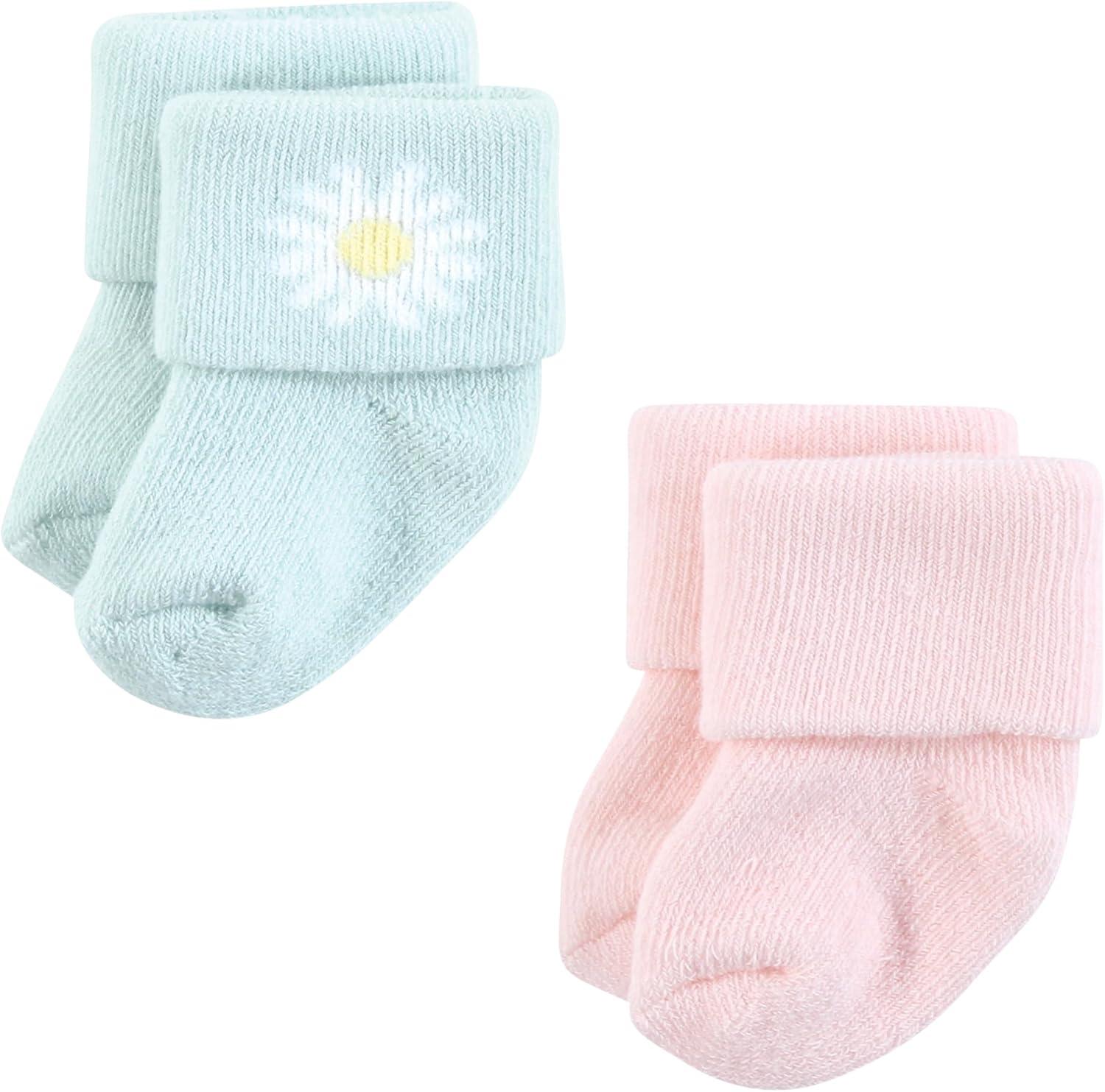 Hudson Baby Unisex Baby Cotton Rich Newborn and Terry Socks, Blue Sage Stripe, 0-6 Months(Pink Dainty Floral)