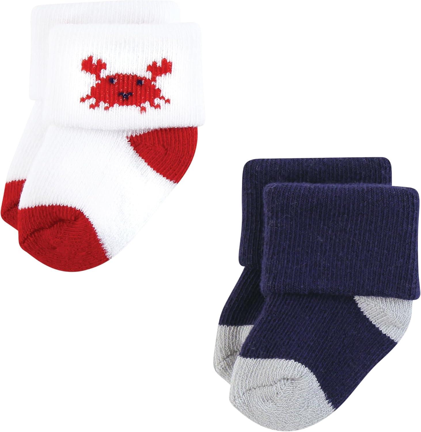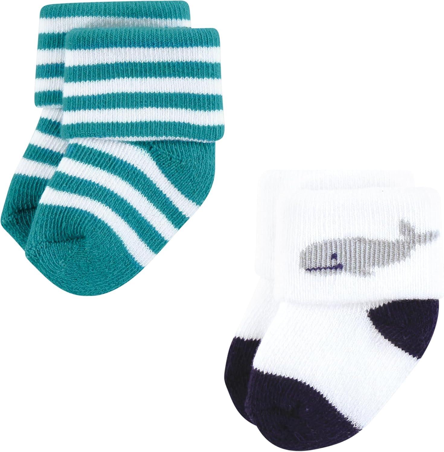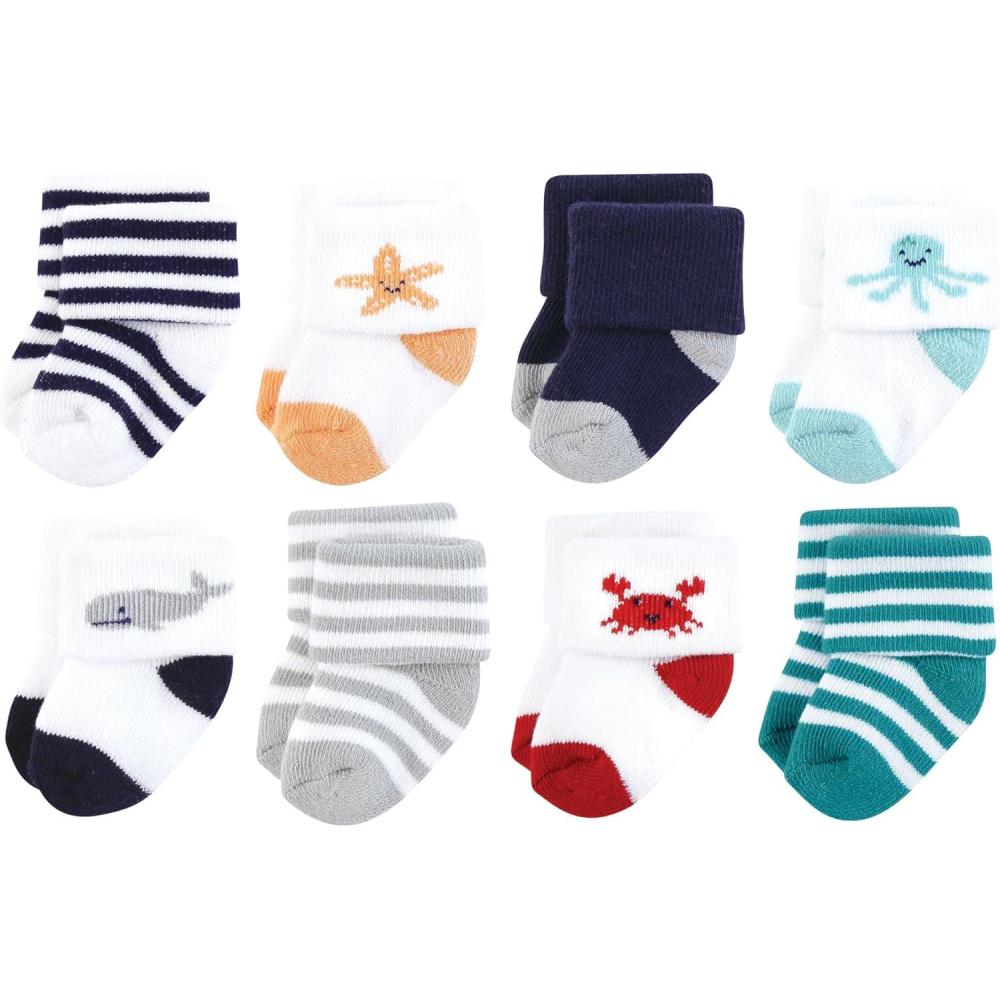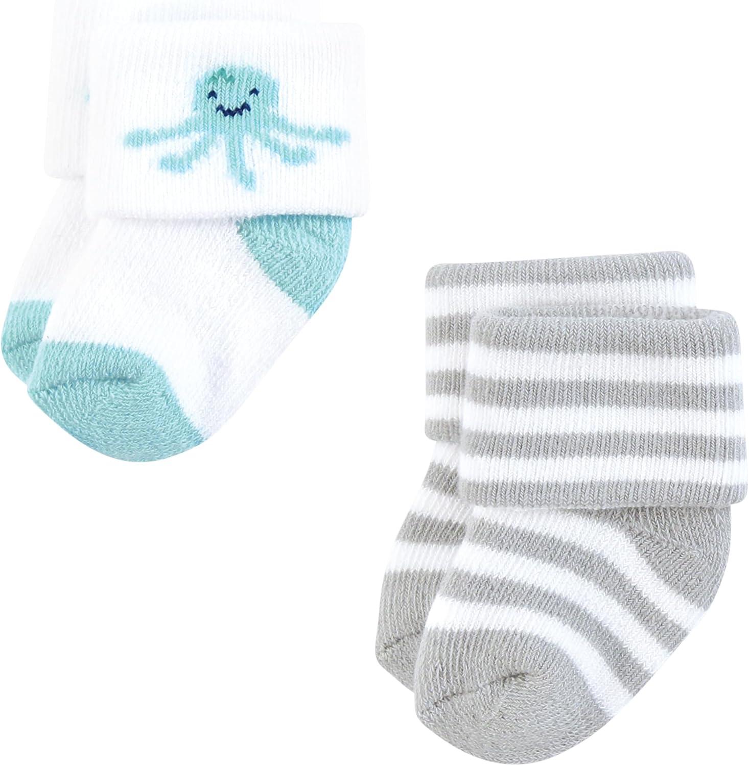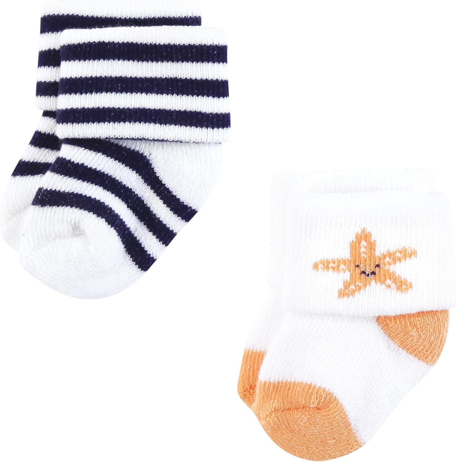 Hudson Baby Unisex Baby Cotton Rich Newborn and Terry Socks, Blue Sage Stripe, 0-6 Months(Sea Characters)