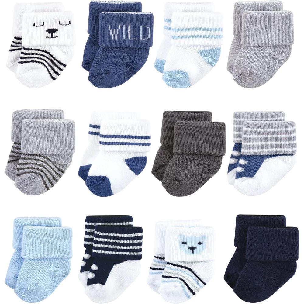 Hudson Baby unisex-baby Cotton Rich Newborn and Terry Socks(Bear Boy 12-pack)