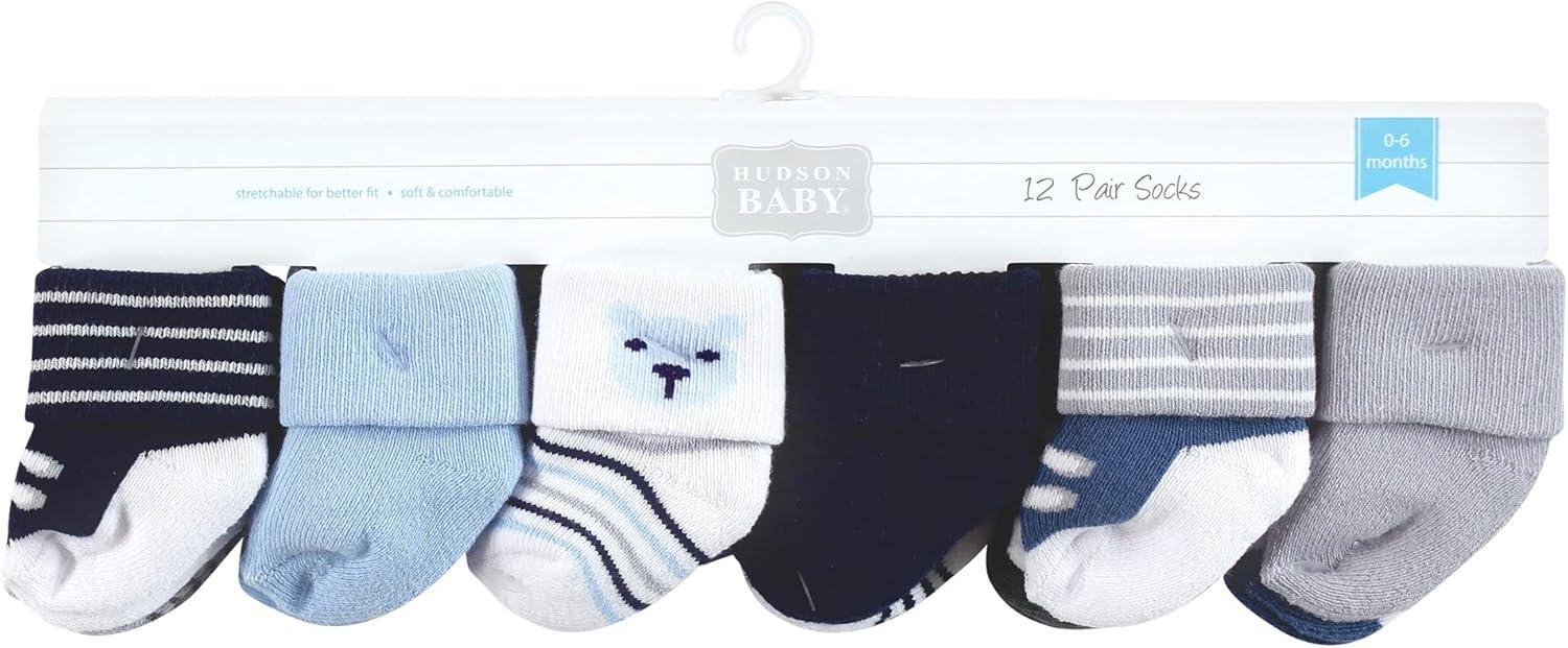 Hudson Baby Unisex Baby Cotton Rich Newborn and Terry Socks(Bear Boy 12-pack)