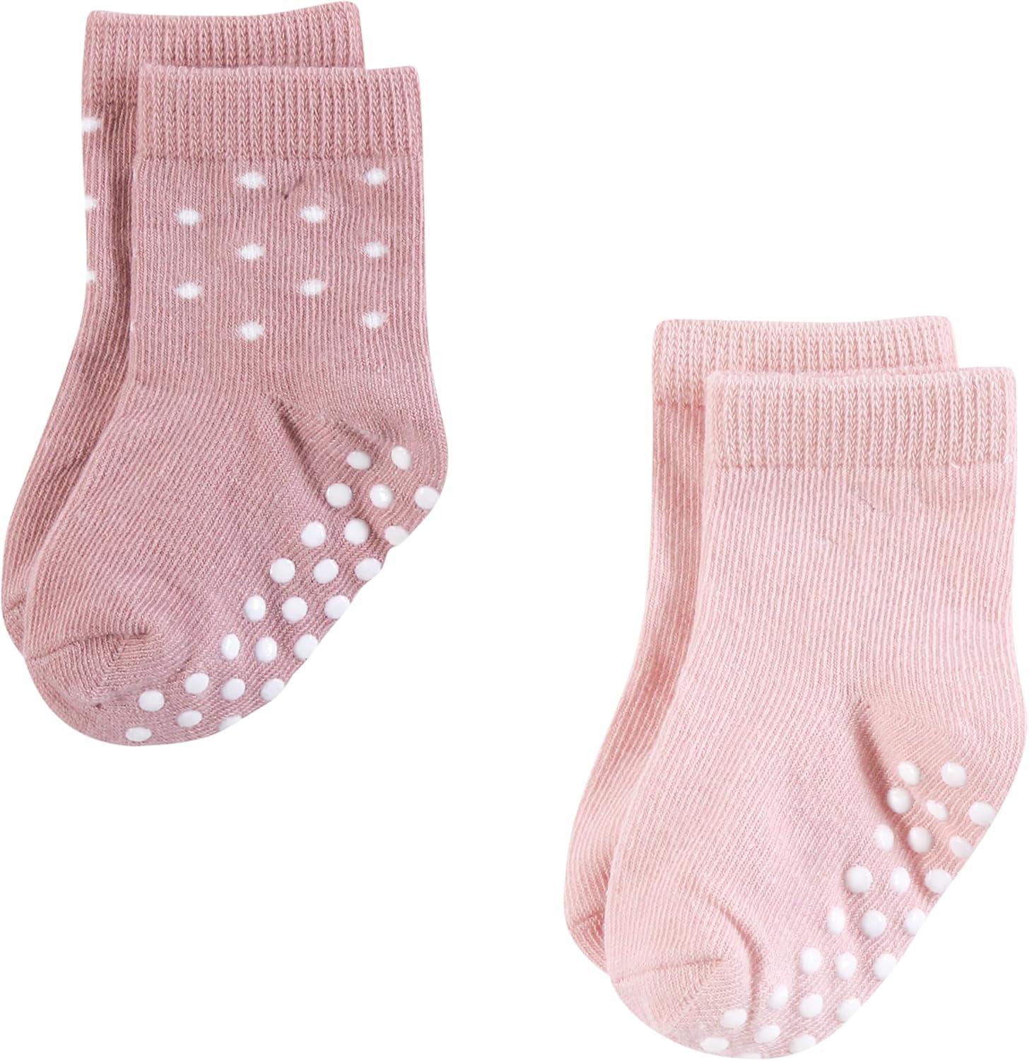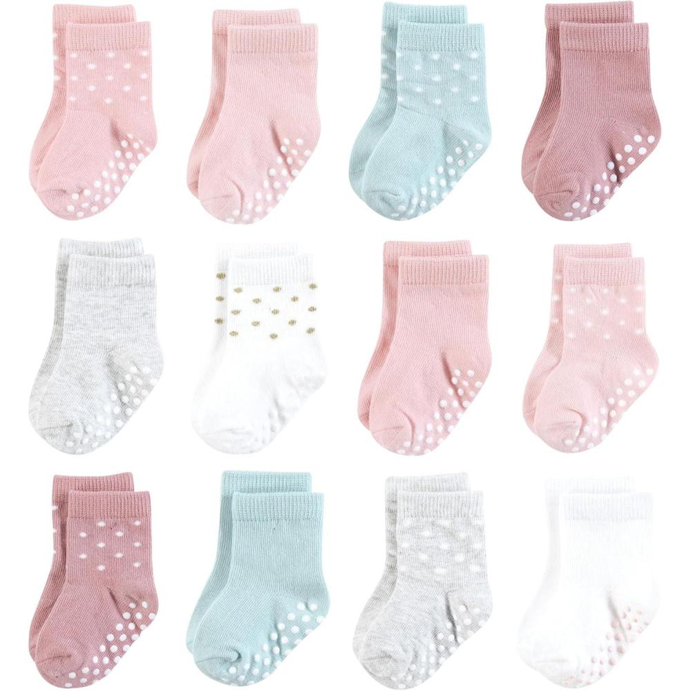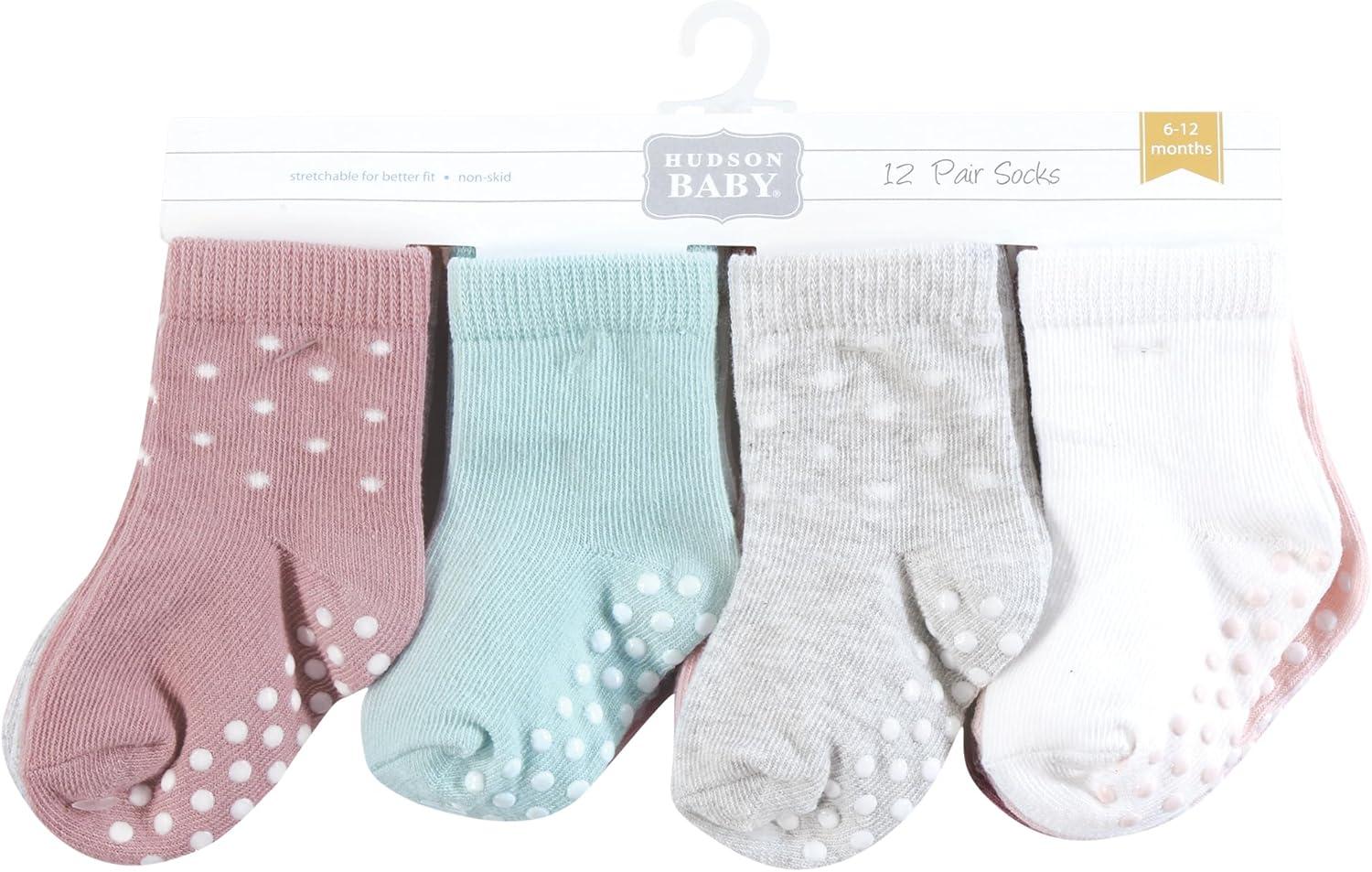 Hudson Baby unisex-baby Cotton Rich Newborn and Terry Socks(Pink Gray Basic)