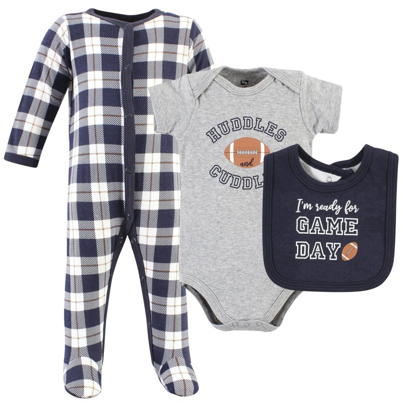 Save big on Hudson Baby Unisex Baby Cotton Sleep and Play, Bodysuit and Bandana Bib Set, Football Huddles, Newborn during our summer blowout sale. Limited quantities available.