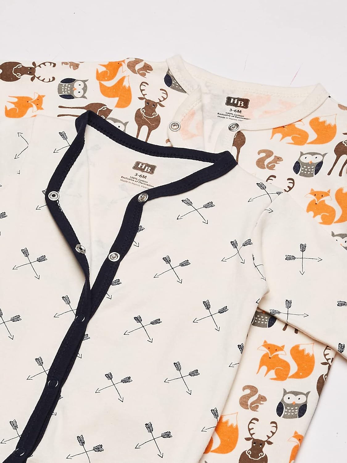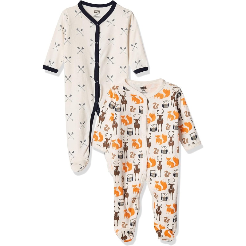 Hudson Baby Premium & super soft cotton sleep and play with snap front and leg closures is the perfect sleeper for yorur little one! 100% cotton fabric is super soft on your little one's skin. These little jammies snap down the front and down both legs to make diaper changes and dressing a breeze! Fun and trendy prints to make bedtime routine so fun. These are durable and machine washable!