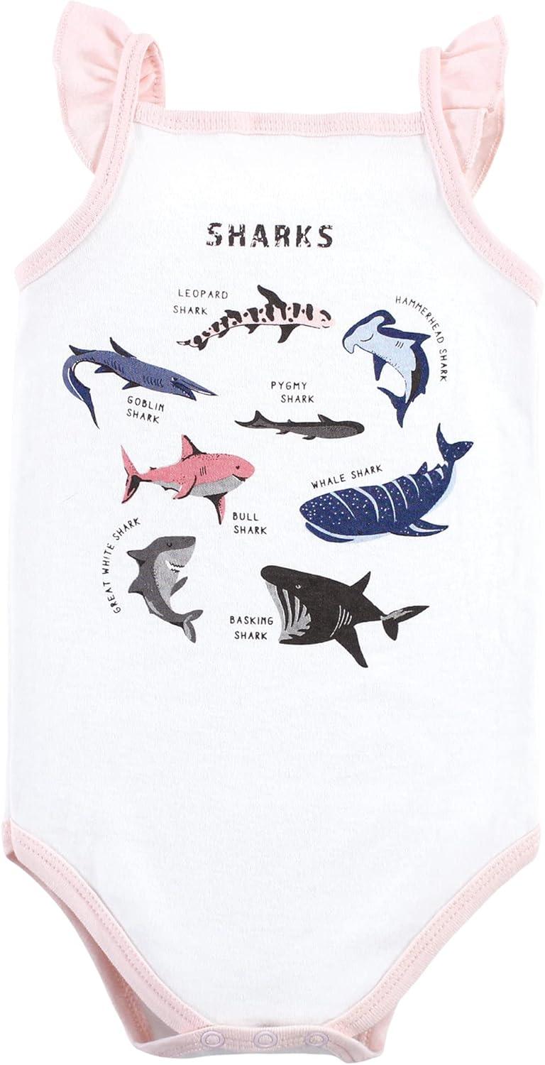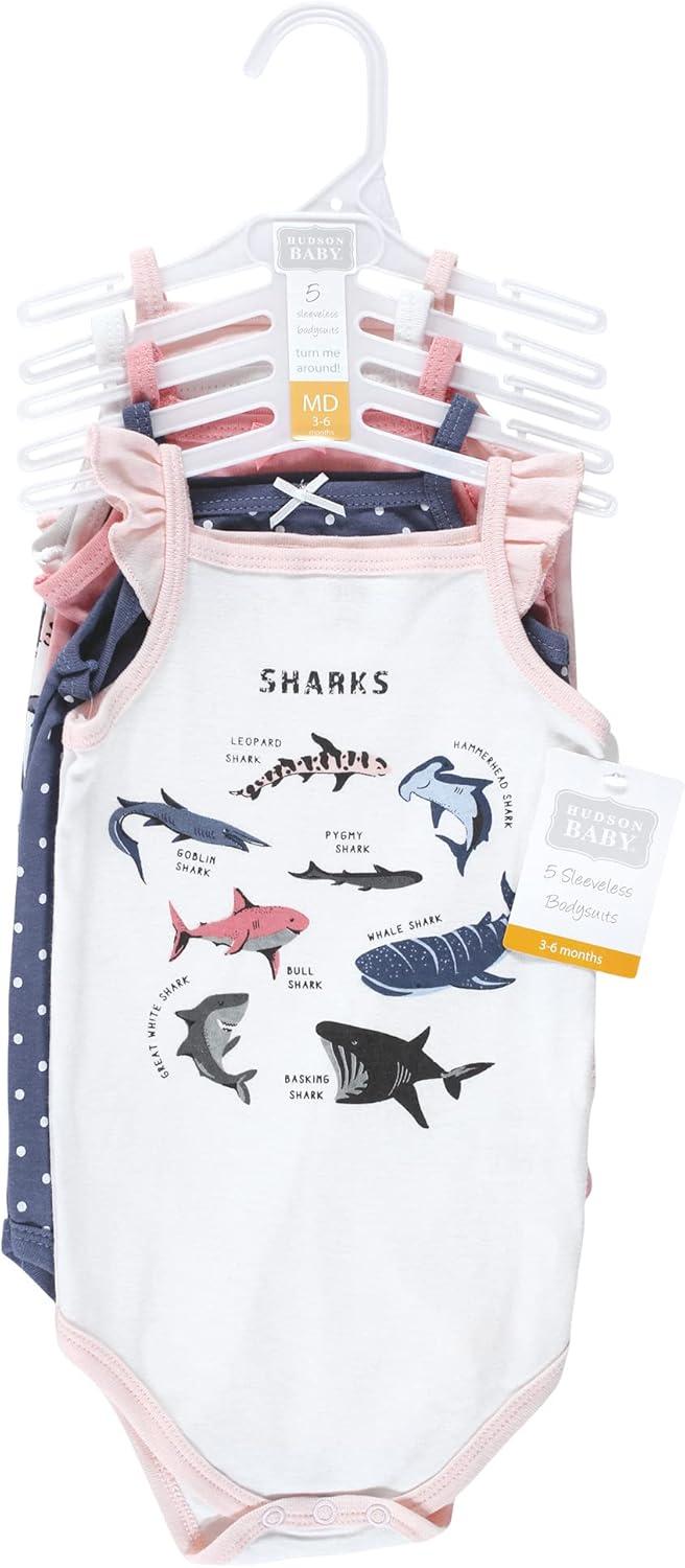 Hudson Baby Unisex Baby Cotton Sleeveless Bodysuits(Girl Shark Types)
