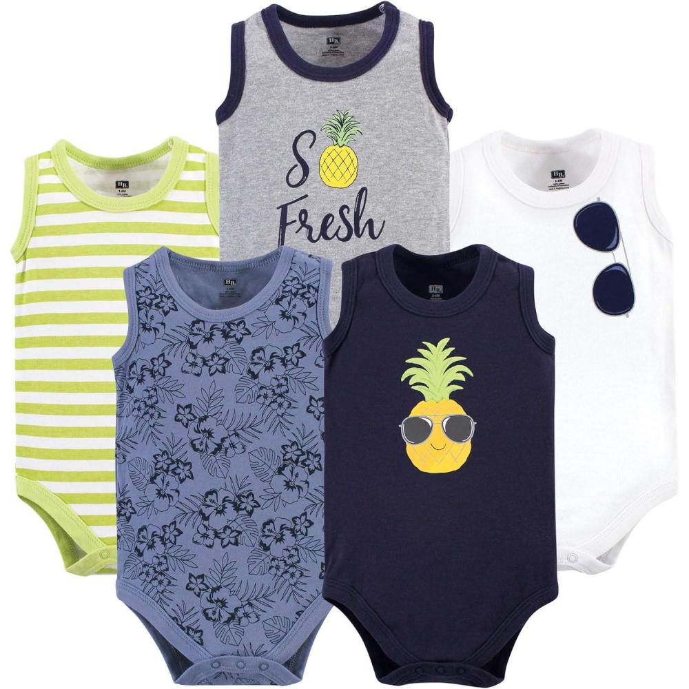 Hudson Baby Unisex Baby Cotton Sleeveless Bodysuits(Pineapple 5-pack)