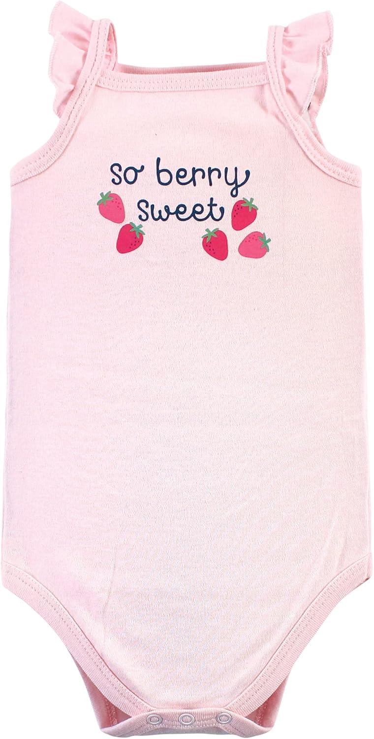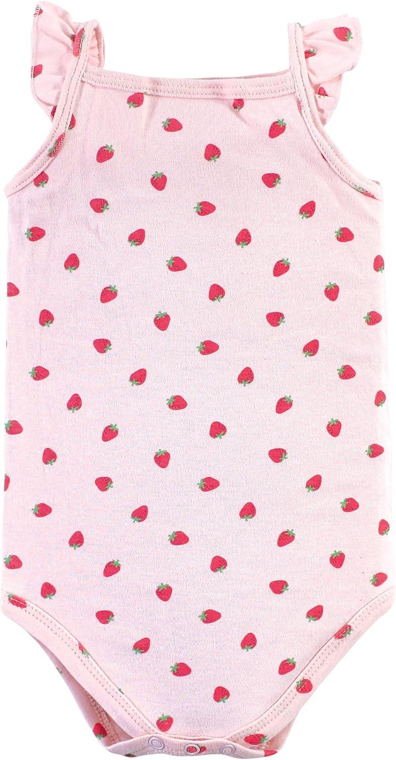 Hudson Baby Unisex Baby Cotton Sleeveless Bodysuits(Pink Strawberry)