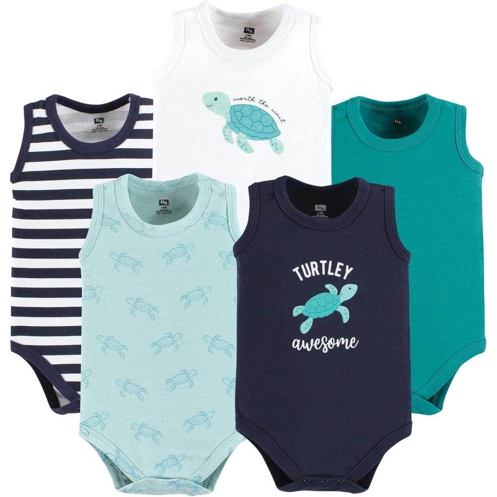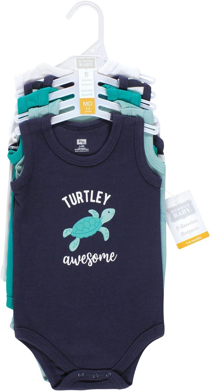 Hudson Baby Unisex Baby Cotton Sleeveless Bodysuits(Sea Turtle)