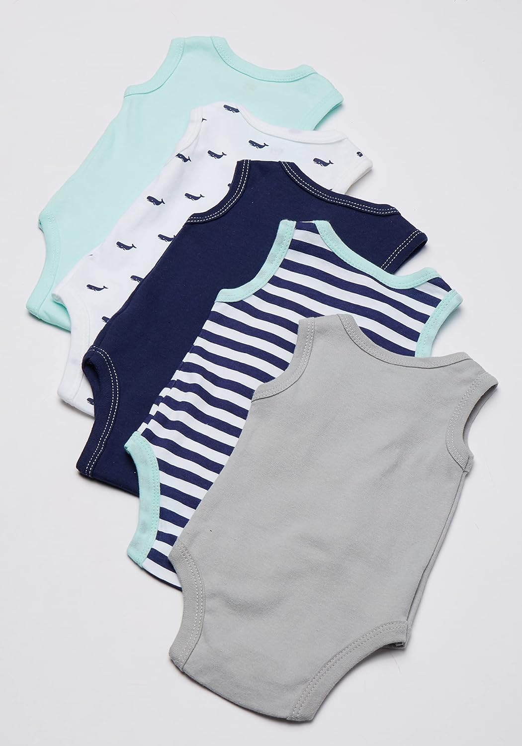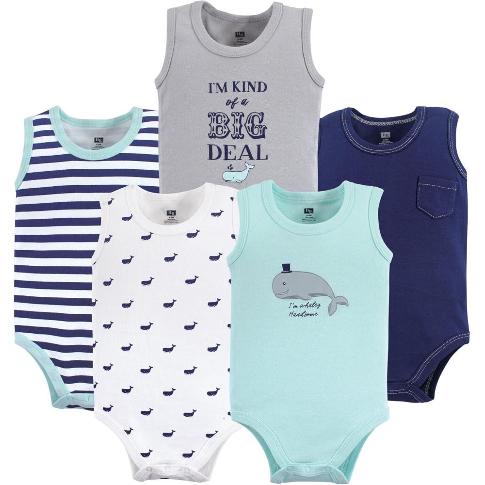 Hudson Baby Unisex Baby Cotton Sleeveless Bodysuits(Whale)