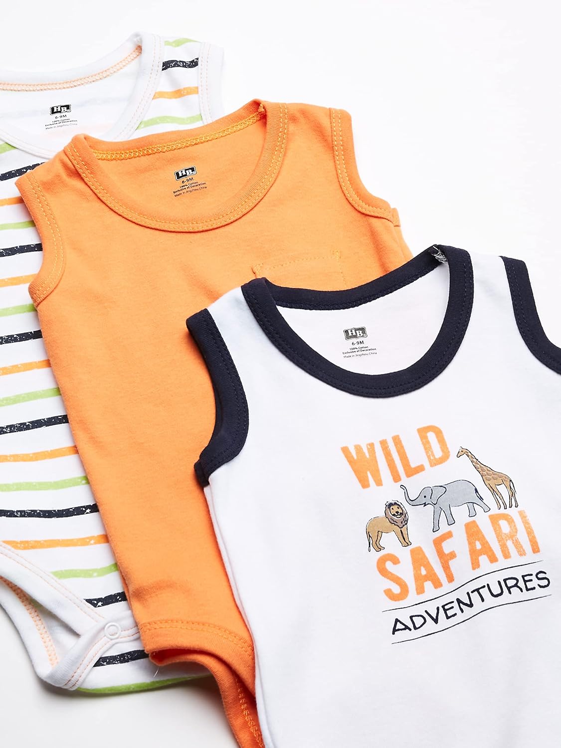 Hudson Baby Unisex Baby Cotton Sleeveless Bodysuits(Wild Safari)