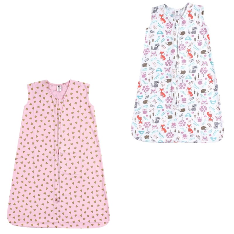 Hudson Baby Unisex Baby Cotton Sleeveless Wearable Sleeping Bag, Gold Hearts Woodland Fox 2-pack, 0-6 Months US(Hudson Baby Unisex Baby Cotton Sleeveless Wearable Sleeping Bag, Gold Hearts Woodland Fox 2-pack, 0-6 Months US)