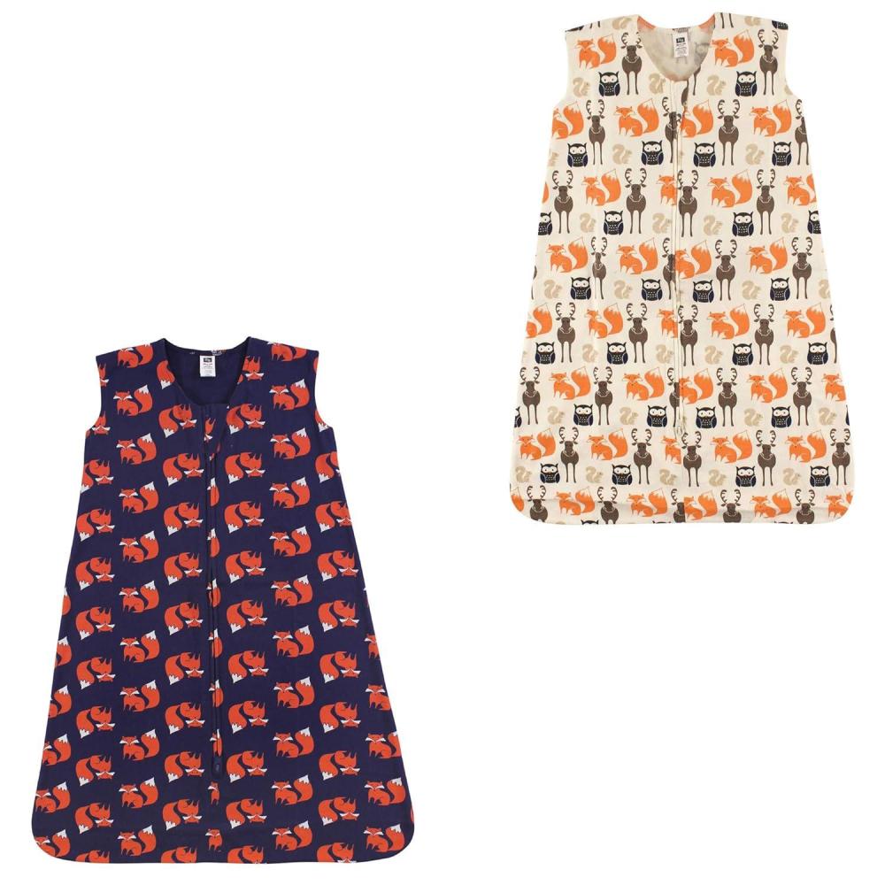 Hudson Baby Unisex Baby Cotton Sleeveless Wearable Sleeping Bag, Sack, Blanket, Fairytale Princess, 0-6 Months(Fox and Wooddfox and Creatures 2-pack)