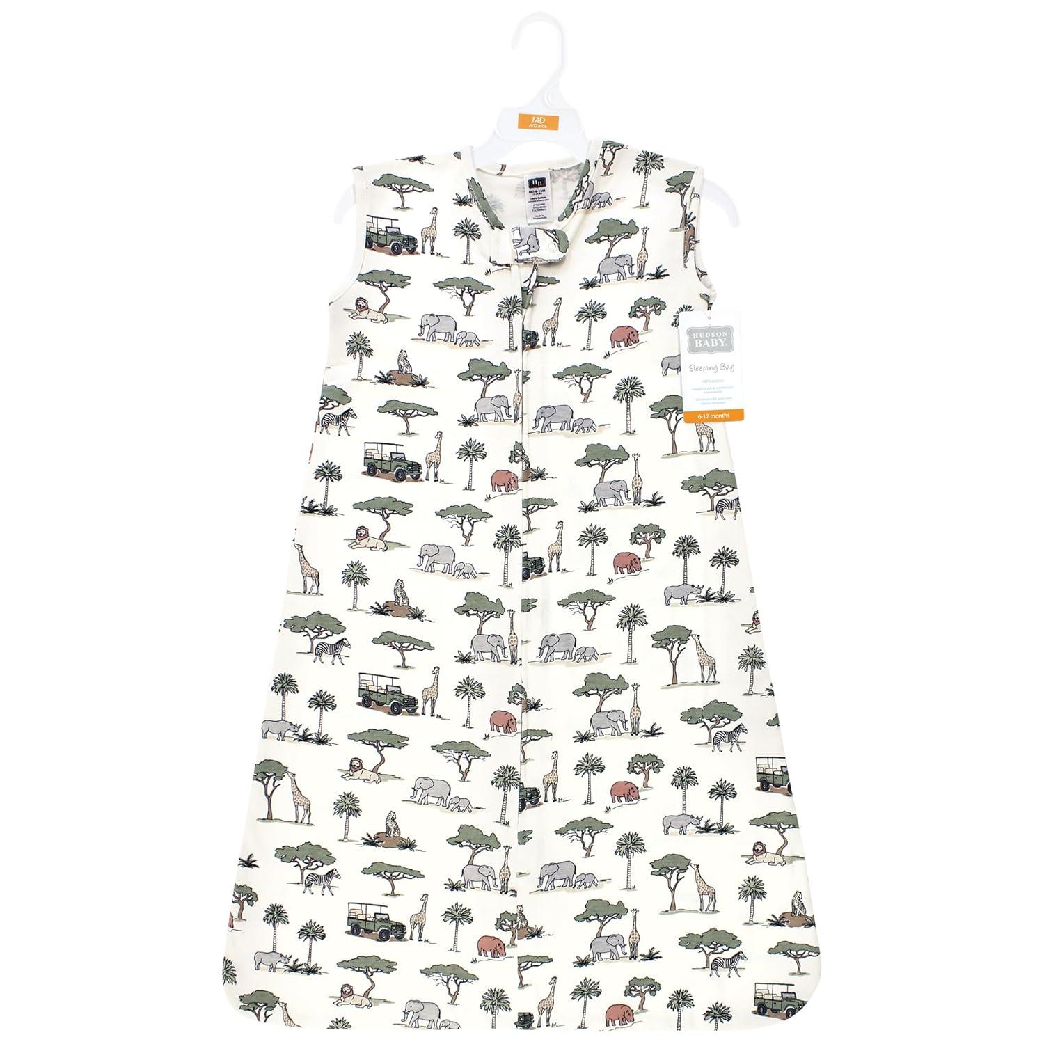 Hudson Baby Unisex Baby Cotton Sleeveless Wearable Sleeping Bag, Sack, Blanket, Fairytale Princess, 0-6 Months(Going on Safari)