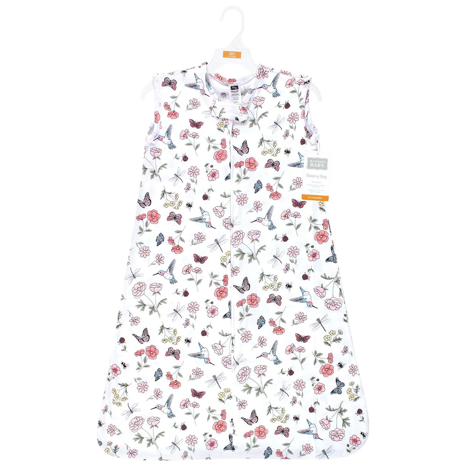 Hudson Baby Unisex Baby Cotton Sleeveless Wearable Sleeping Bag, Sack, Blanket, Fairytale Princess, 0-6 Months(Hummingbird Garden)