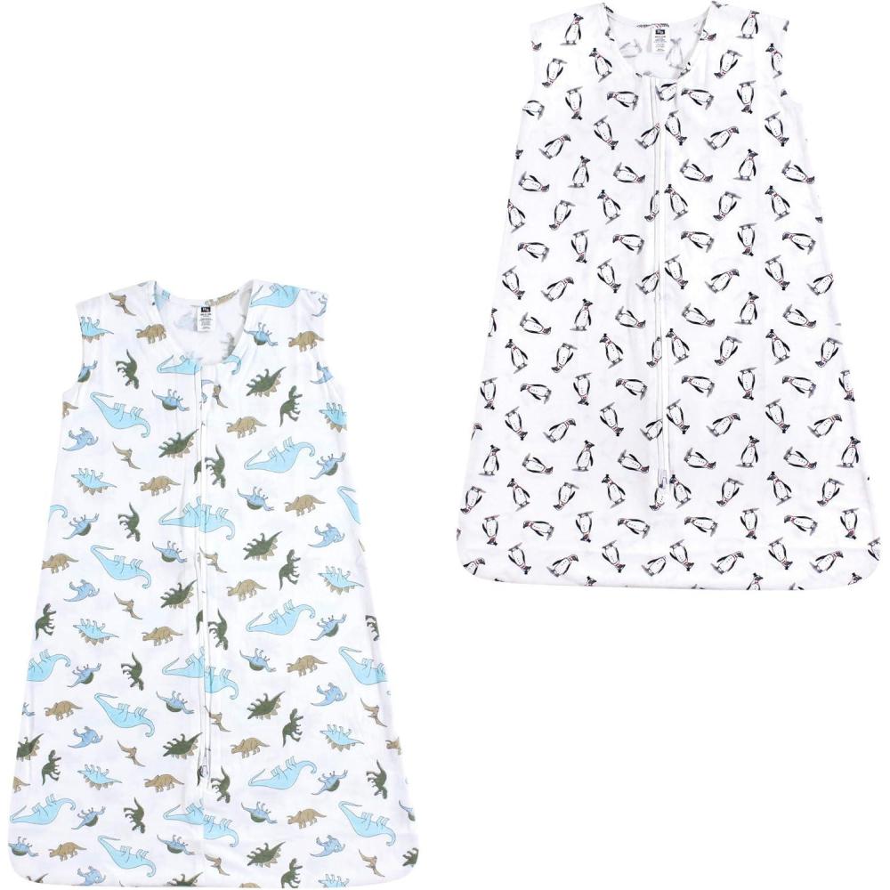 Hudson Baby Unisex Baby Cotton Sleeveless Wearable Sleeping Bag(Dinosaurs and Penguins 2-pack)