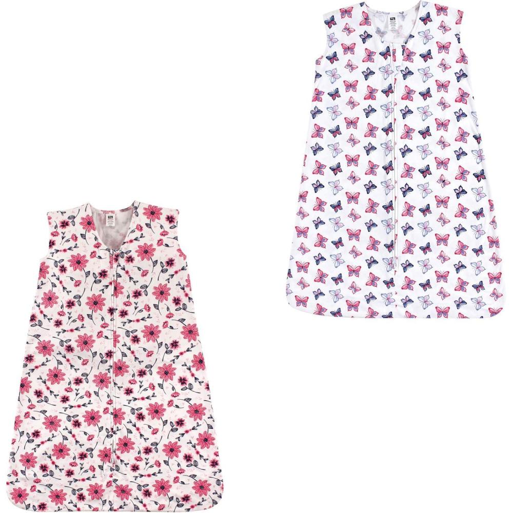 Hudson Baby Unisex Baby Cotton Sleeveless Wearable Sleeping Bag(Pink Flowers and Butterflies 2-pack)