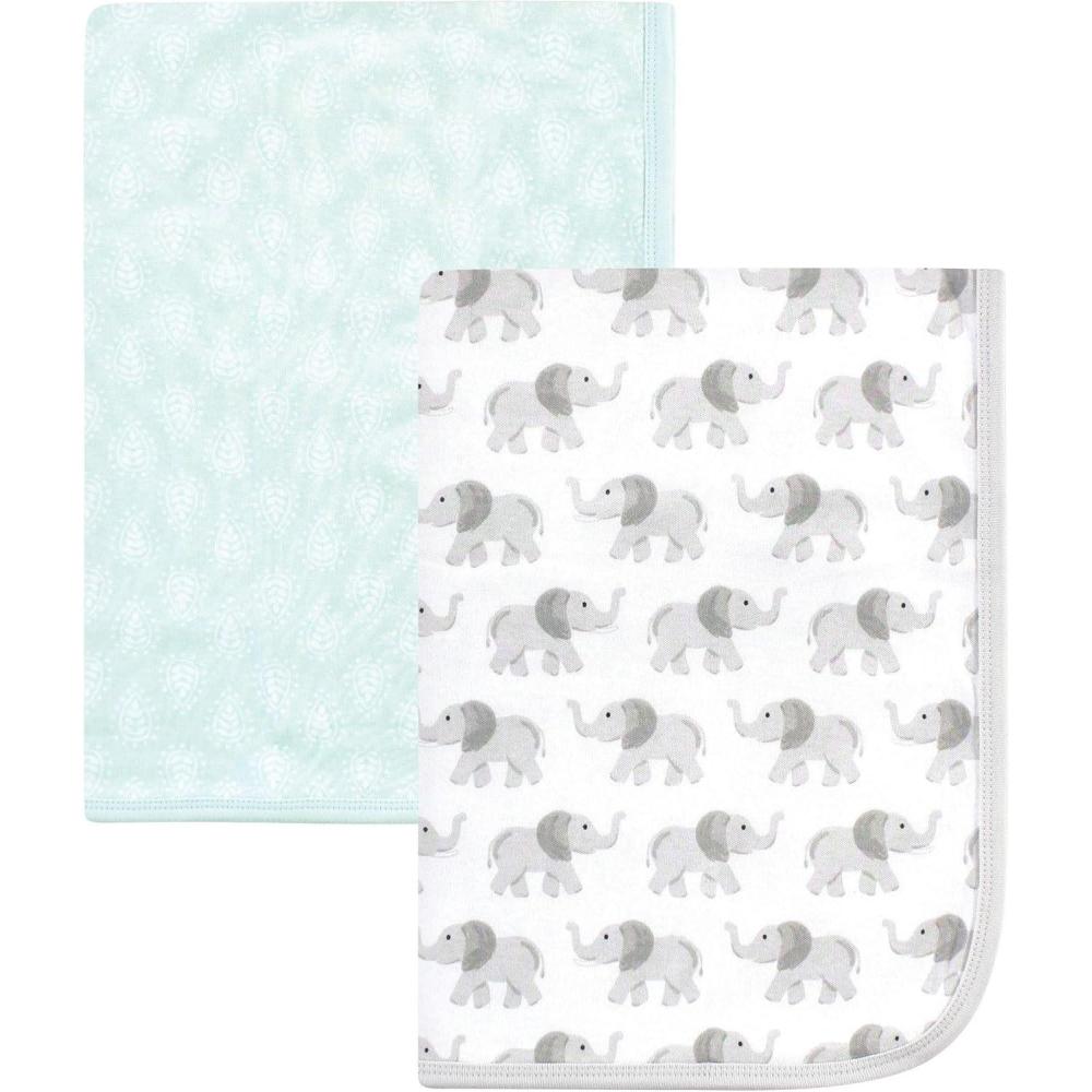 Hudson Baby Unisex Baby Cotton Swaddle Blankets, Woodland Fox, One Size(Gray Elephant)