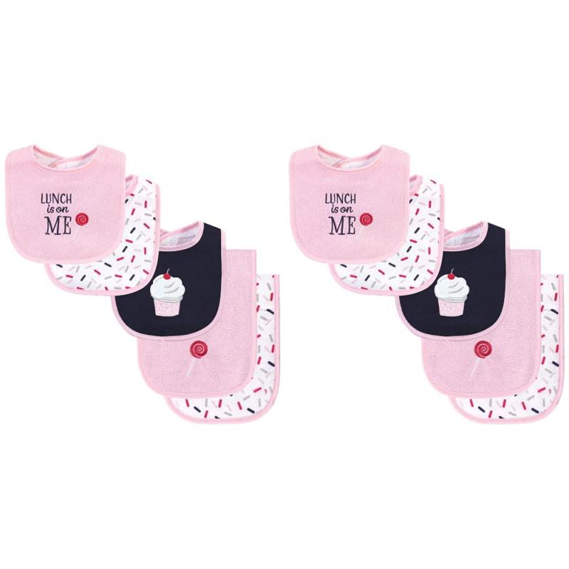 Hudson Baby Unisex Baby Cotton Terry Bib and Burp Cloth Set, Football, One Size(Cupcake)