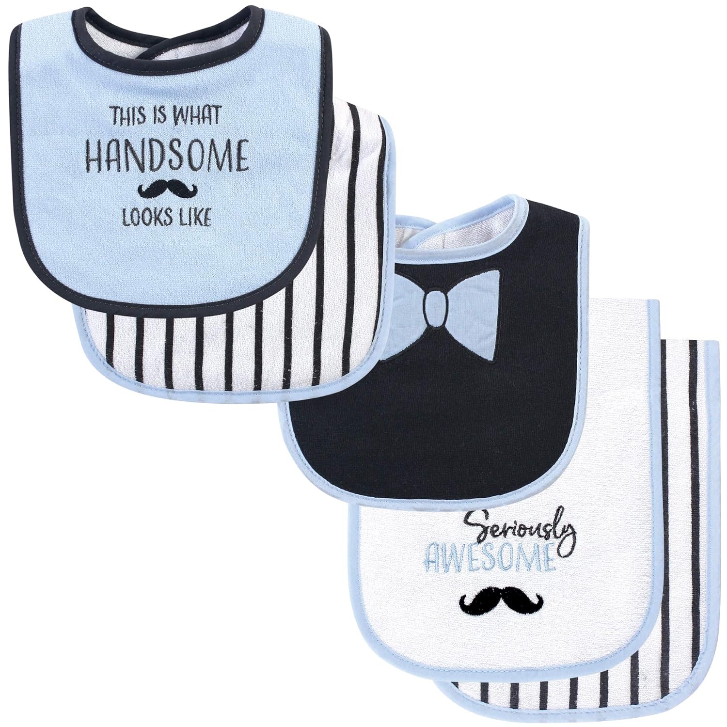 Hudson Baby Unisex Baby Cotton Terry Bib and Burp Cloth Set, Football, One Size(Perfect Gentleman)