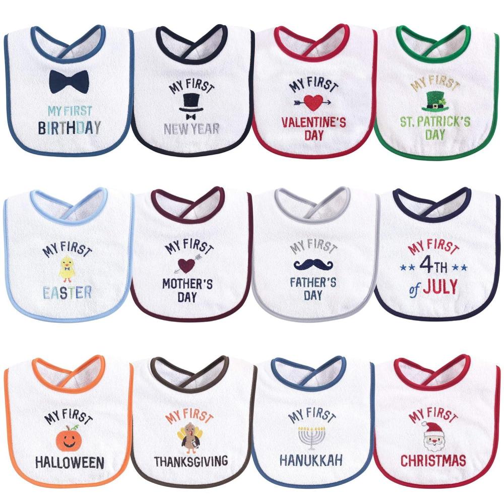Hudson Baby Unisex Baby Cotton Terry Drooler Bibs with Fiber Filling, Girl Fox, One Size(Boy Holiday)