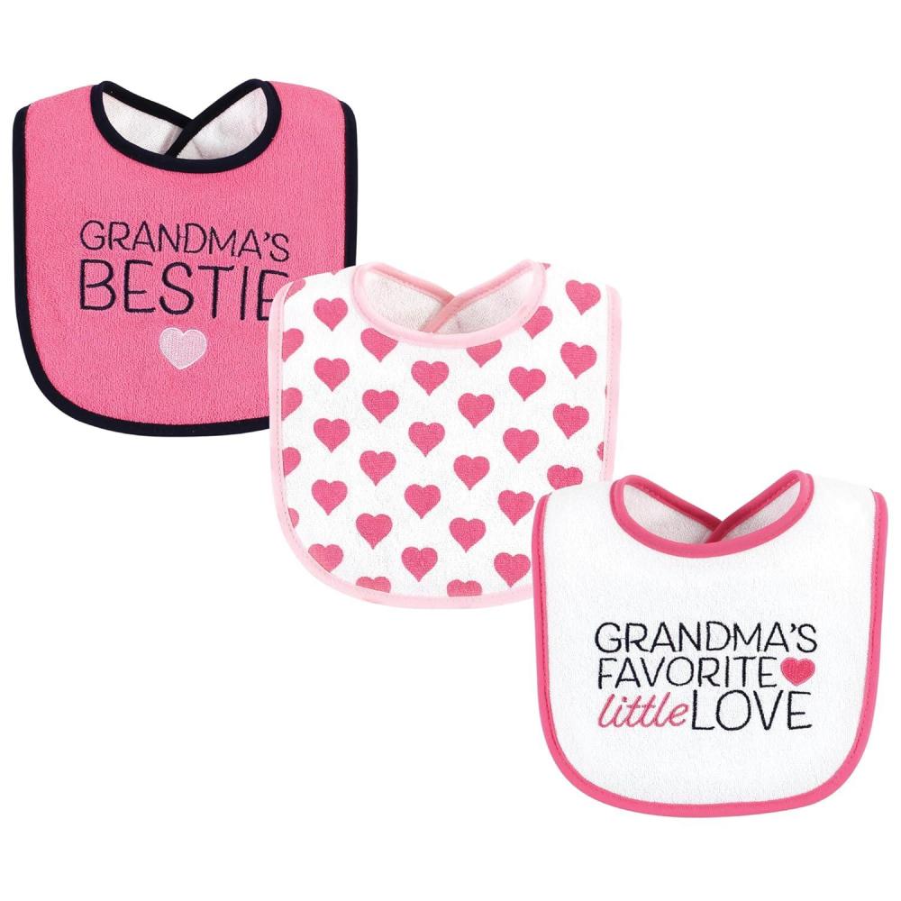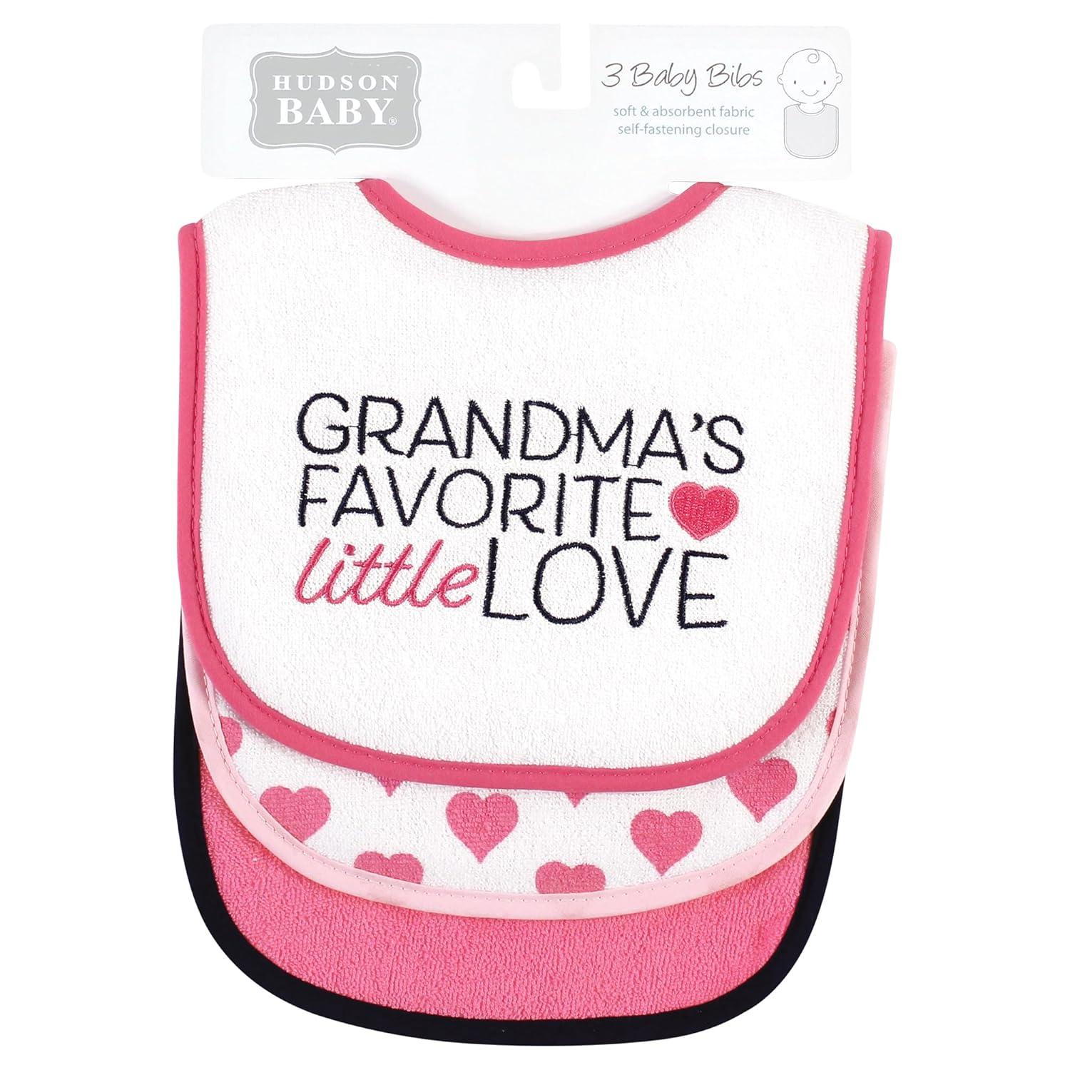 Hudson Baby Unisex Baby Cotton Terry Drooler Bibs with Fiber Filling, Girl Fox, One Size(Grandmas Favorite Heart)