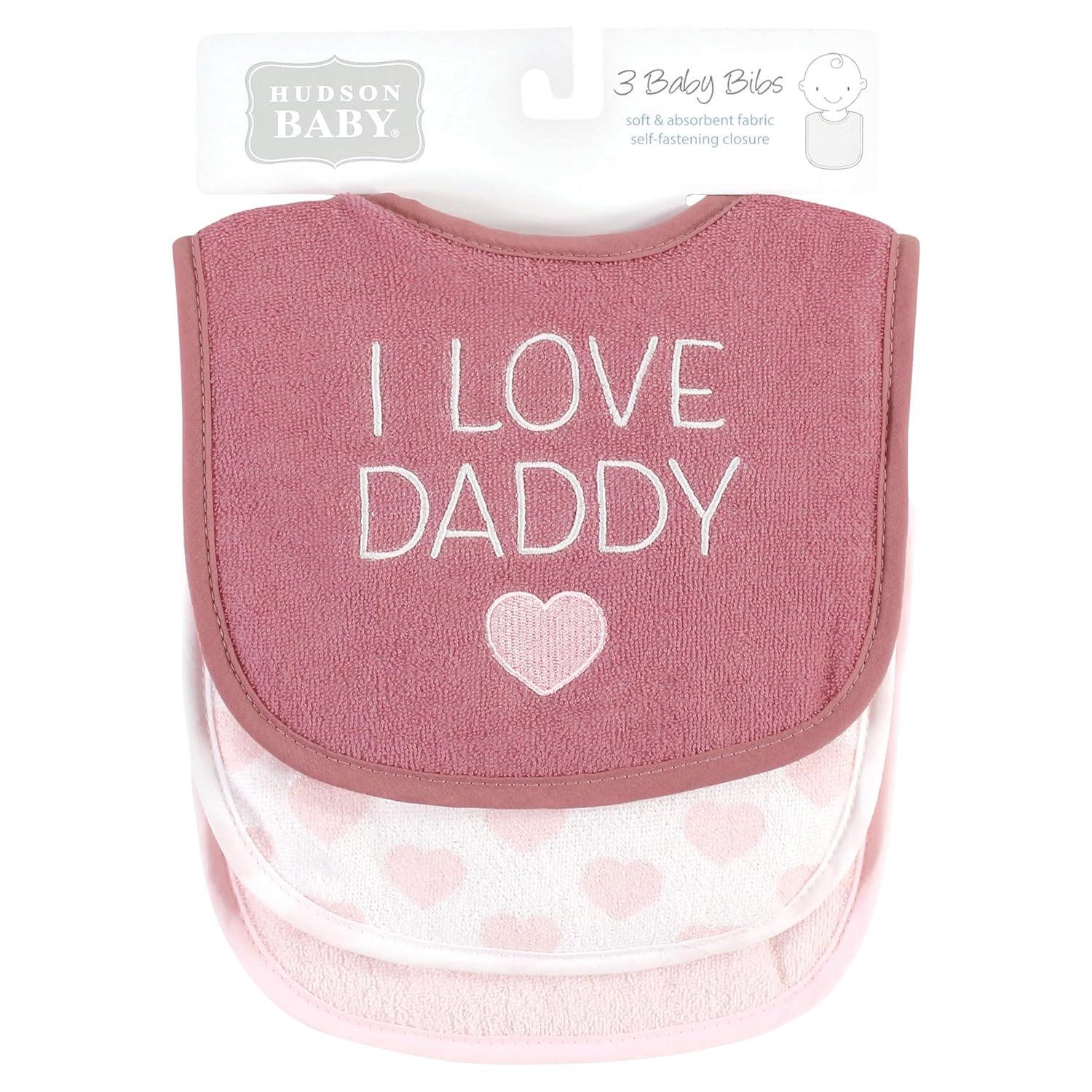 Hudson Baby Unisex Baby Cotton Terry Drooler Bibs with Fiber Filling, Girl Fox, One Size(I Love Daddy Wild Rose)