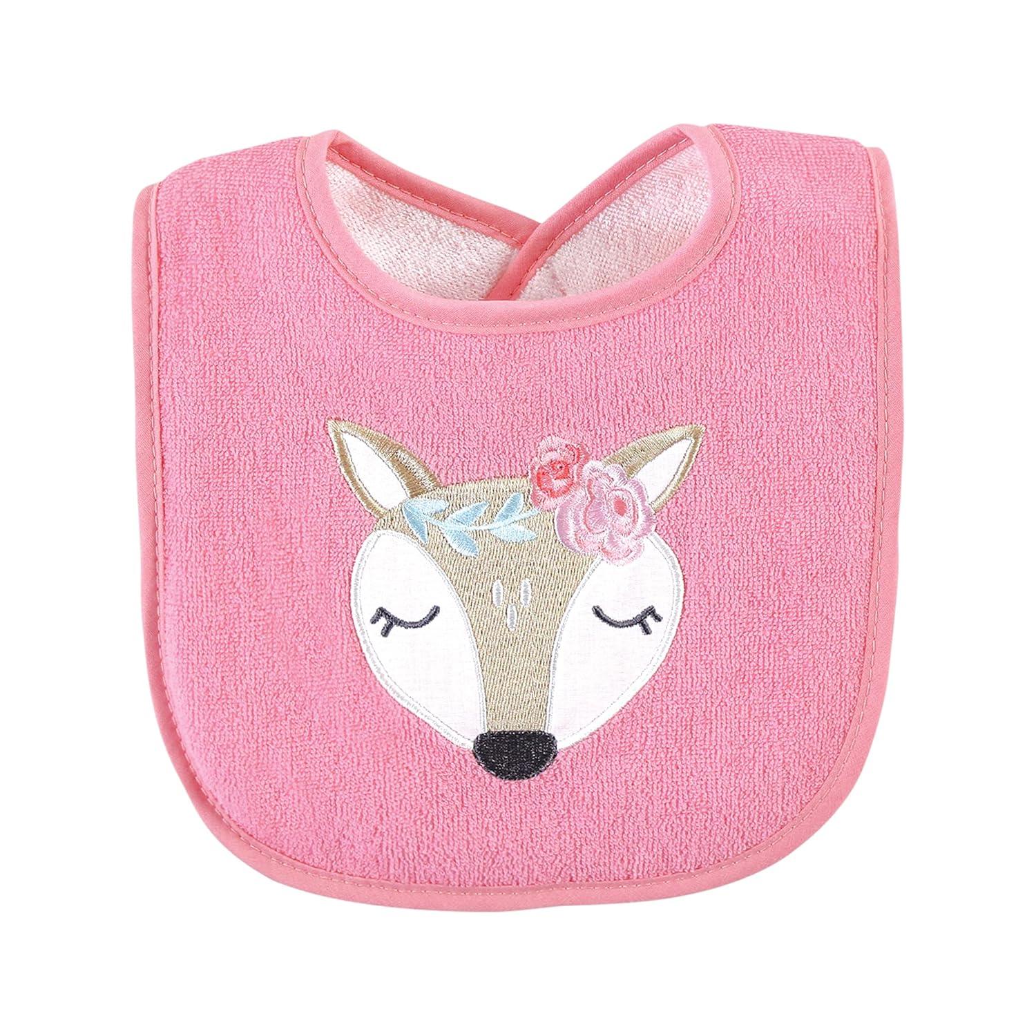 Hudson Baby Unisex Baby Cotton Terry Drooler Bibs with Fiber Filling, Girl Fox, One Size(Pink Girl Woodland)