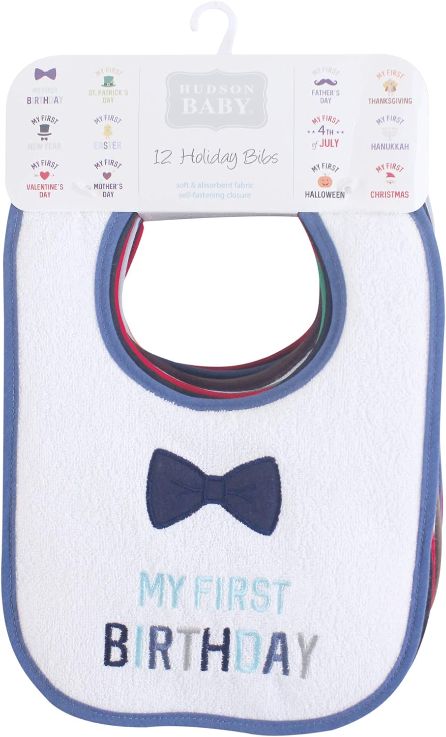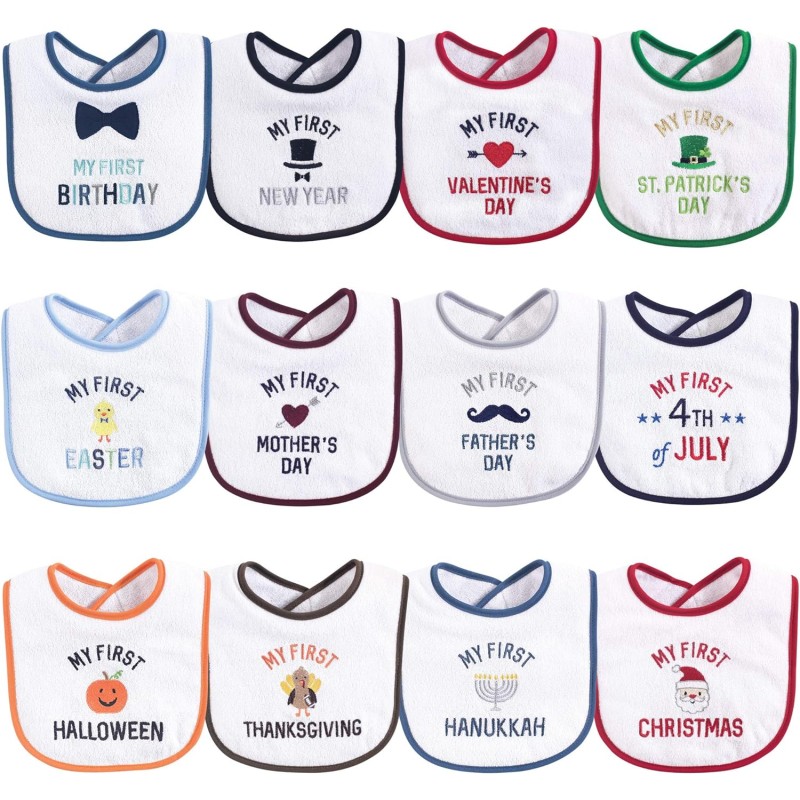 Hudson Baby Unisex Baby Cotton Terry Drooler Bibs With Fiber Filling(Boy Holiday)