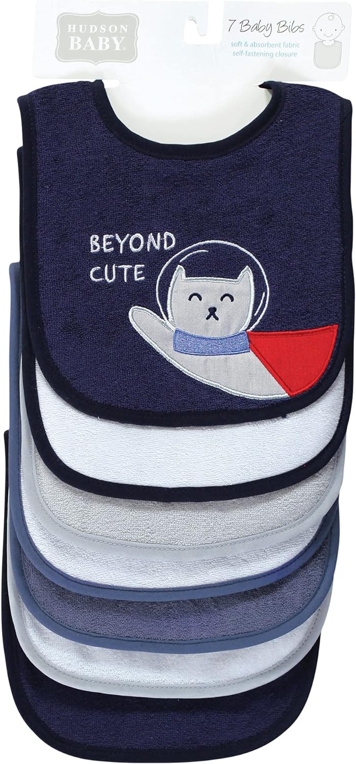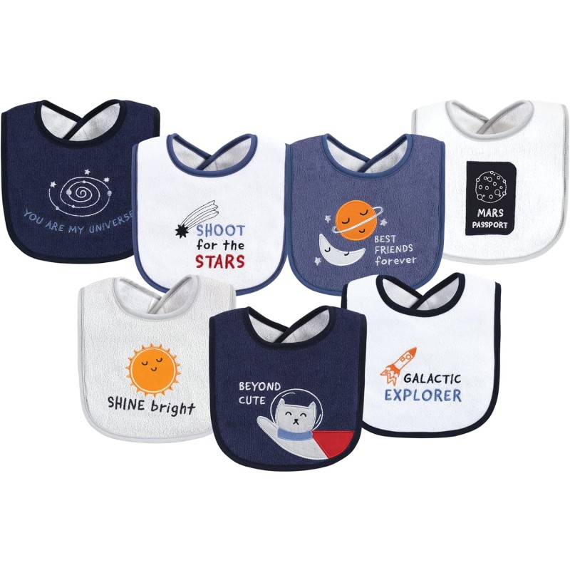 Hudson Baby Unisex Baby Cotton Terry Drooler Bibs With Fiber Filling(Galactic Explorer)