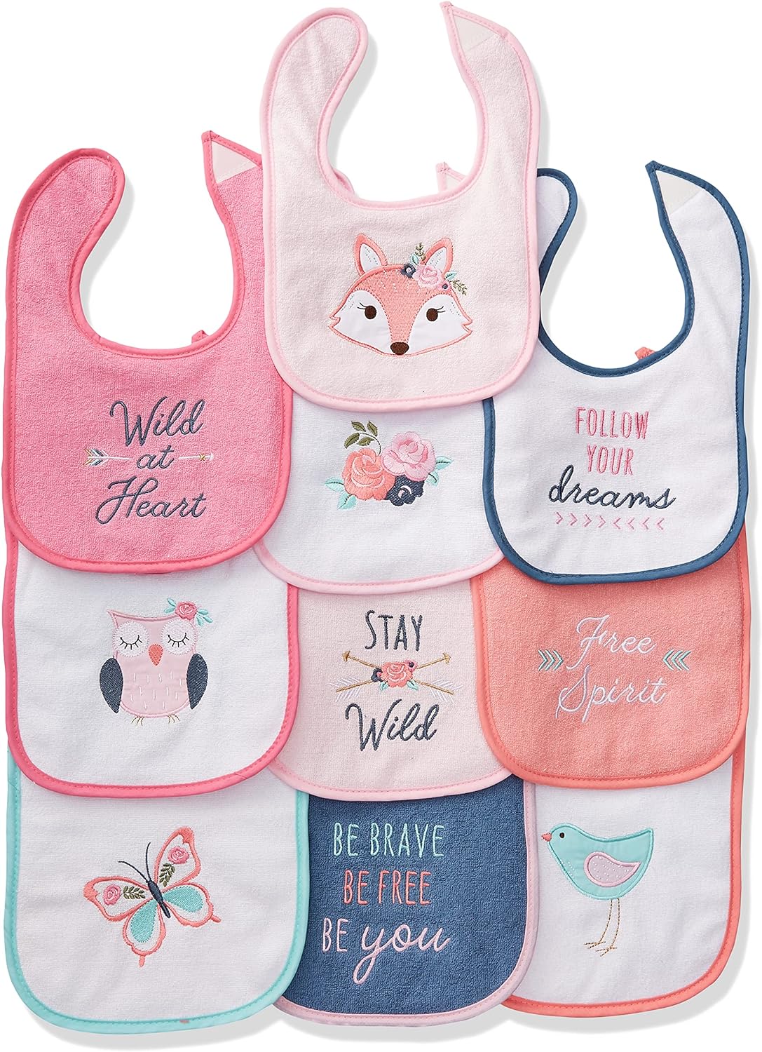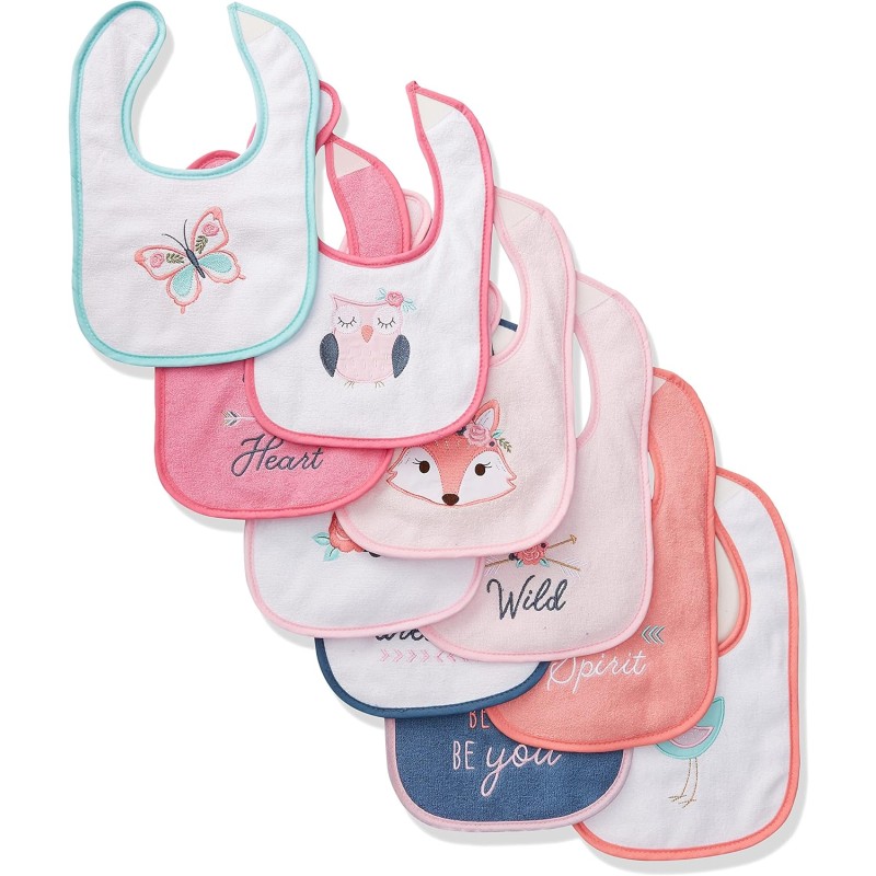 Hudson Baby Unisex Baby Cotton Terry Drooler Bibs With Fiber Filling(Girl Fox)
