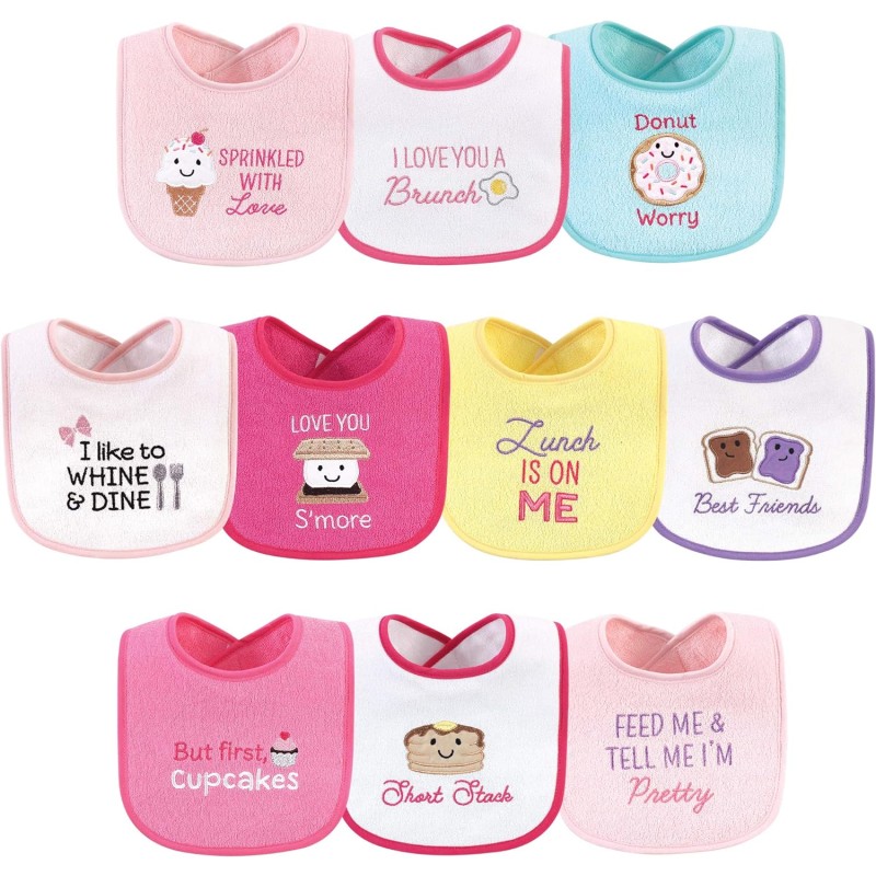 Hudson Baby Unisex Baby Cotton Terry Drooler Bibs With Fiber Filling(Girl Ice Cream)