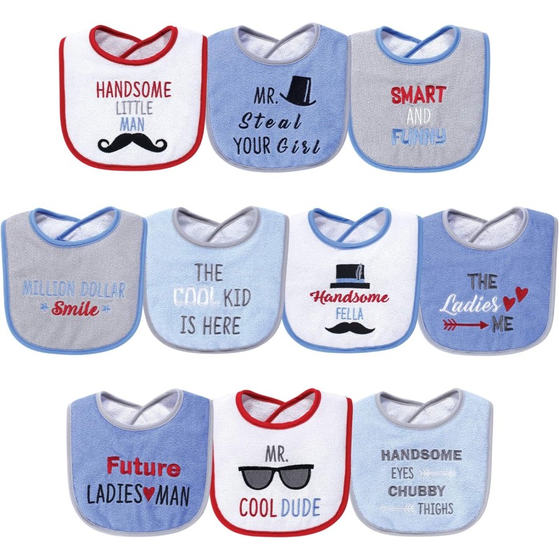 Hudson Baby Unisex Baby Cotton Terry Drooler Bibs With Fiber Filling(Handsome Eyes)