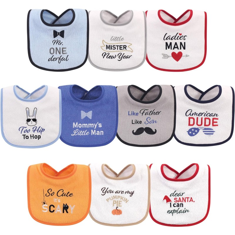 Hudson Baby Unisex Baby Cotton Terry Drooler Bibs With Fiber Filling(Holiday Boy Onederful)