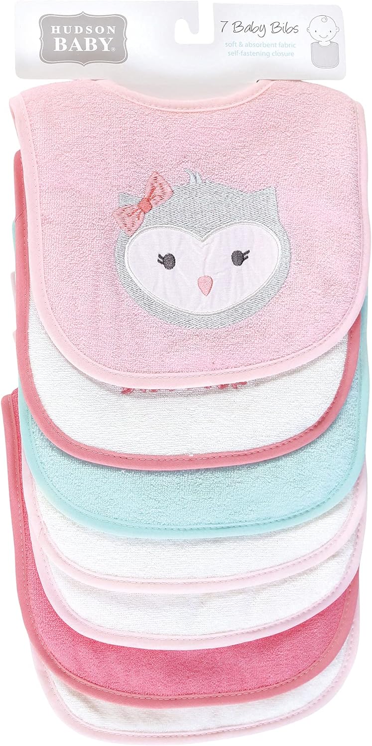 Hudson Baby Unisex Baby Cotton Terry Drooler Bibs With Fiber Filling(Girl Moose Bear)