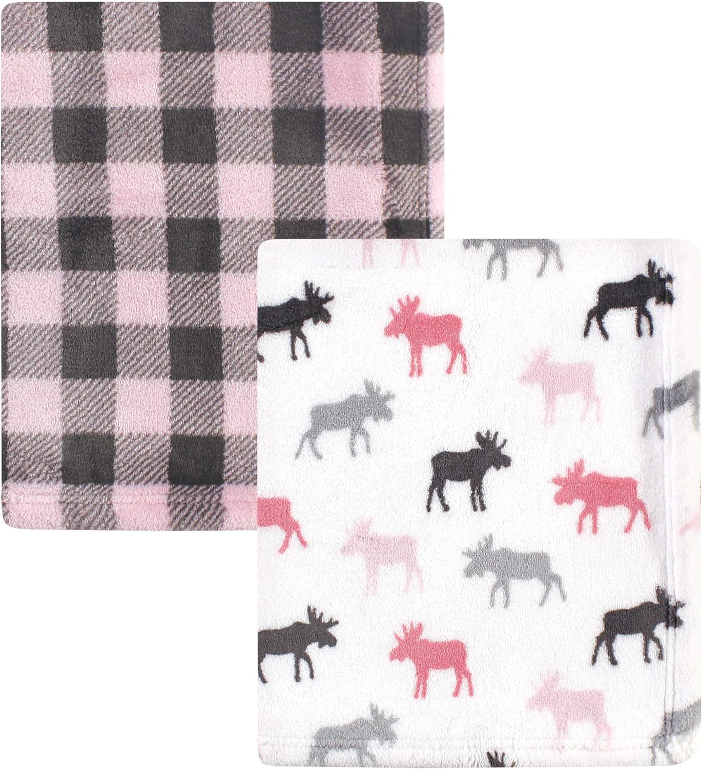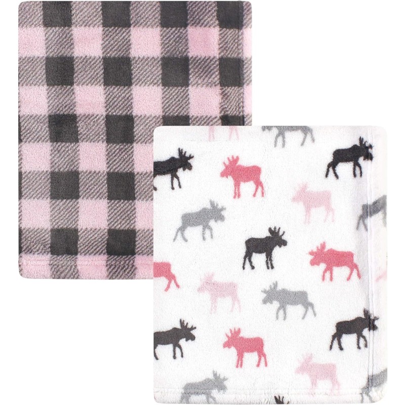 Hudson Baby Unisex Baby Cozy Plush Luxury Blankets 2pk, Pink Moose, One Size(Pink Moose One Size)