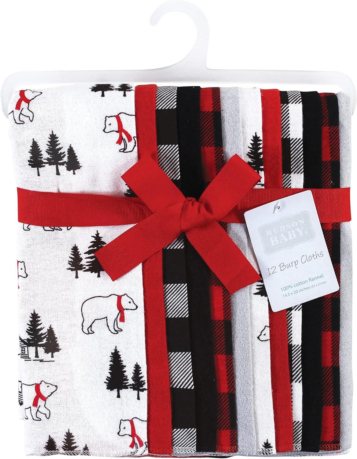 Hudson Baby Unisex Baby Flannel Burp Cloth 12pk, Fun Desert, One Size(Buffalo Plaid Bear)