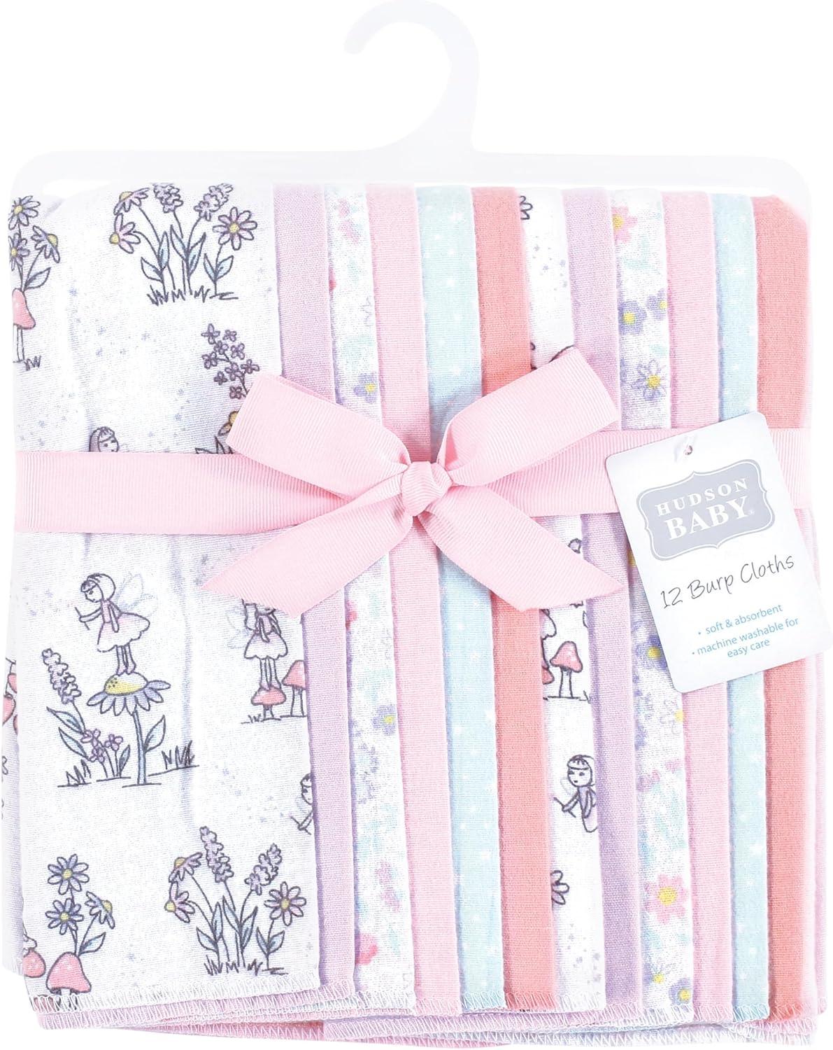 Hudson Baby Unisex Baby Flannel Burp Cloth 12pk, Fun Desert, One Size(Garden Fairies)