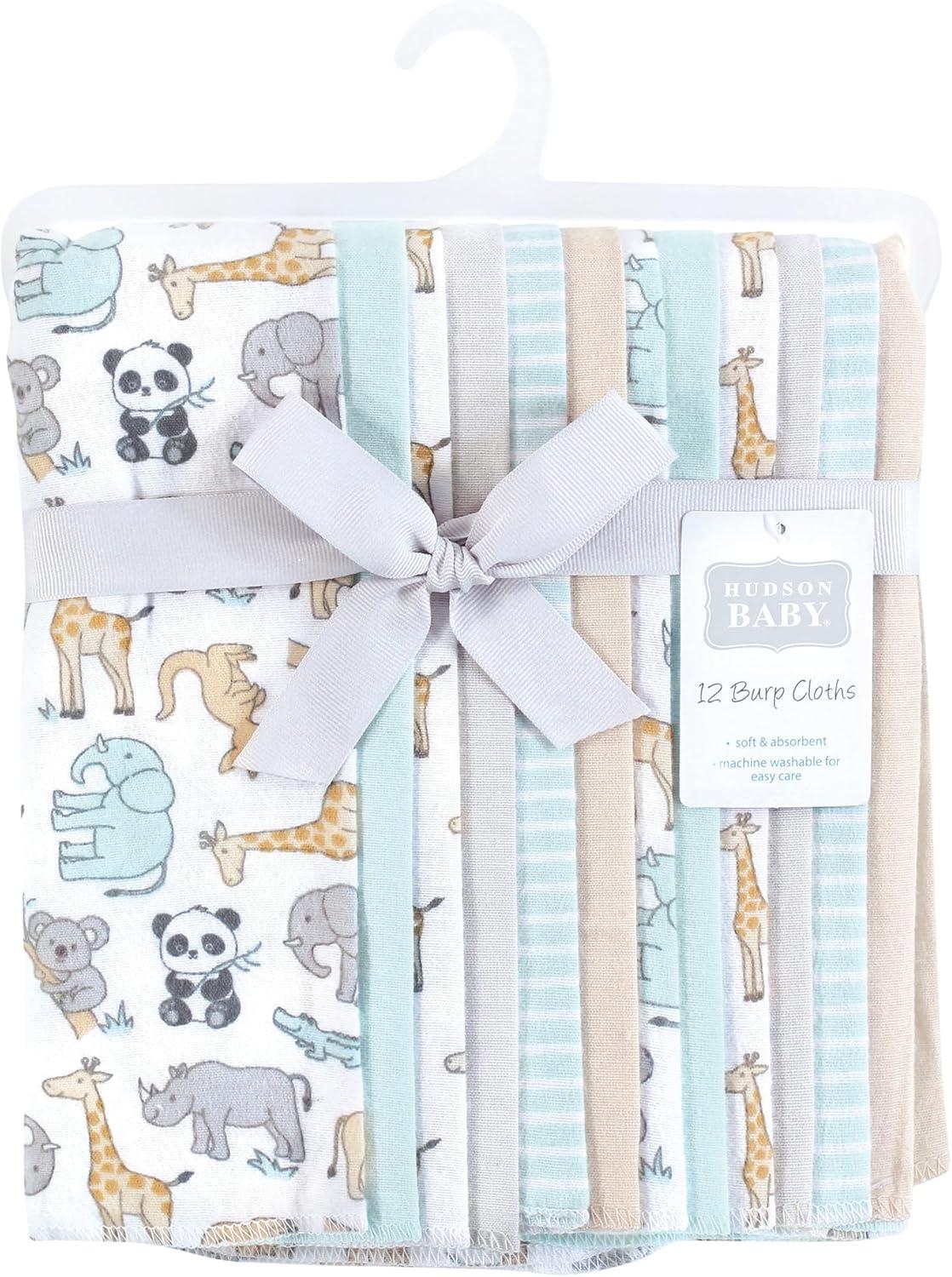 Hudson Baby Unisex Baby Flannel Burp Cloth 12pk, Fun Desert, One Size(Jungle)