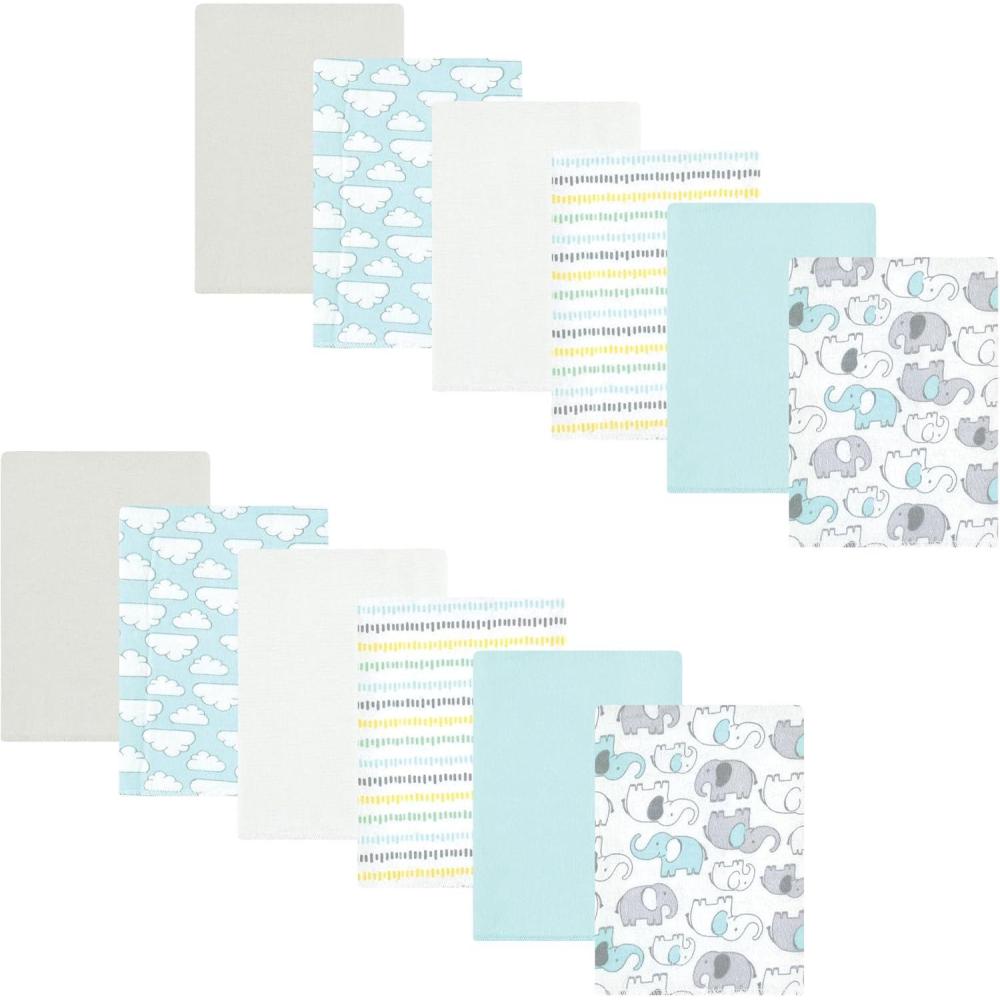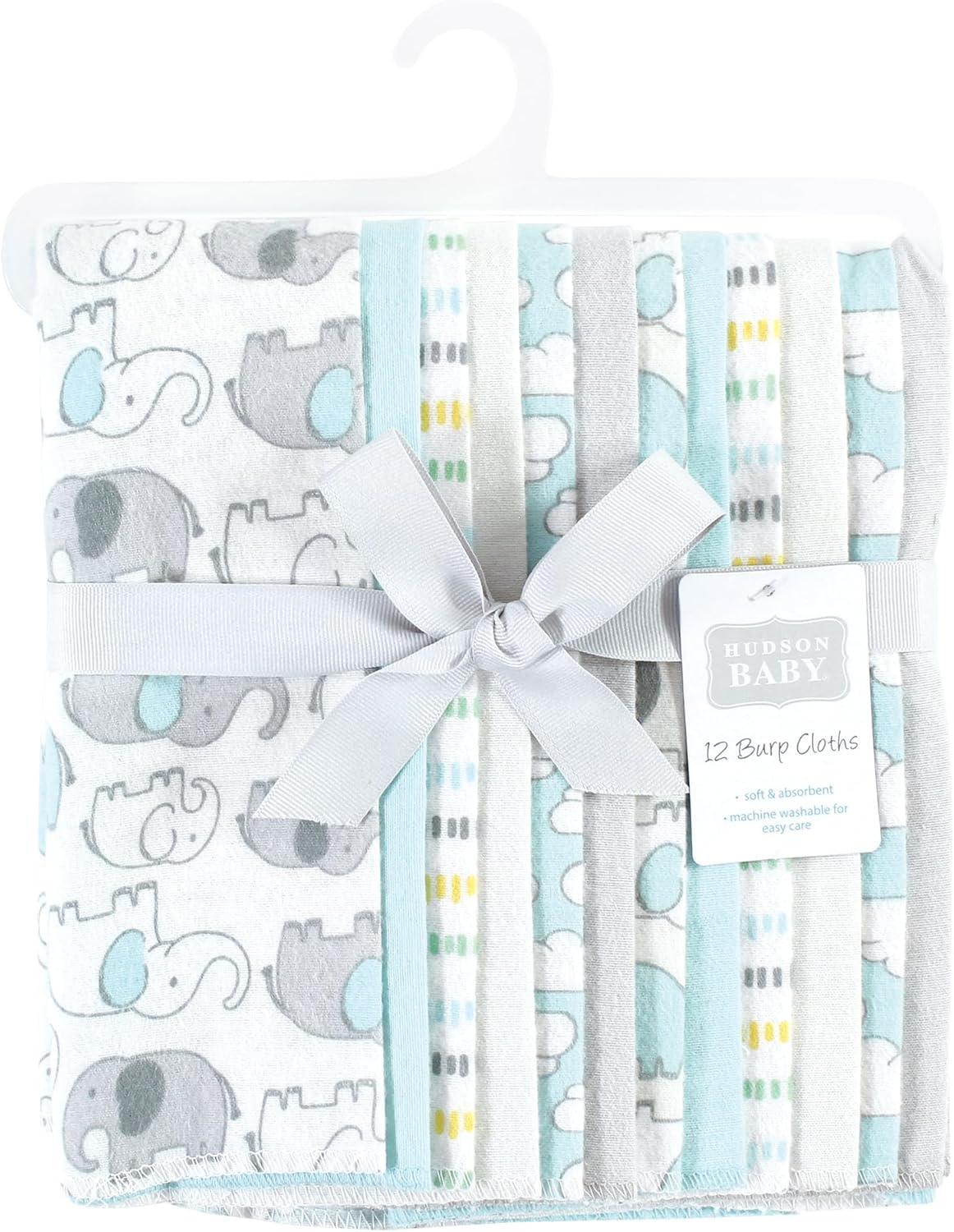 Hudson Baby Unisex Baby Flannel Burp Cloth 12pk, Fun Desert, One Size(Neutral New Elephant)