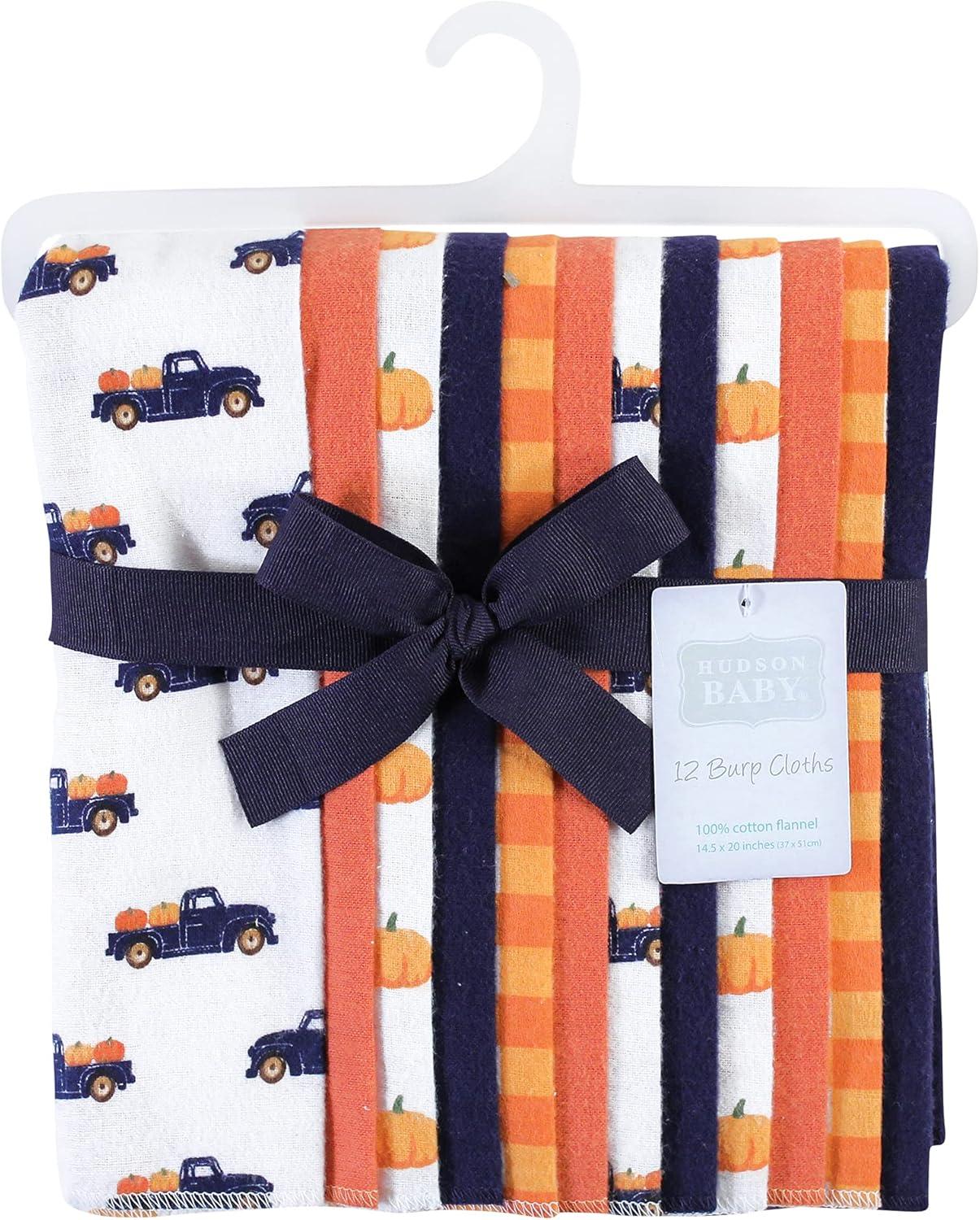 Hudson Baby Unisex Baby Flannel Burp Cloth 12pk, Fun Desert, One Size(Pumpkin Truck)