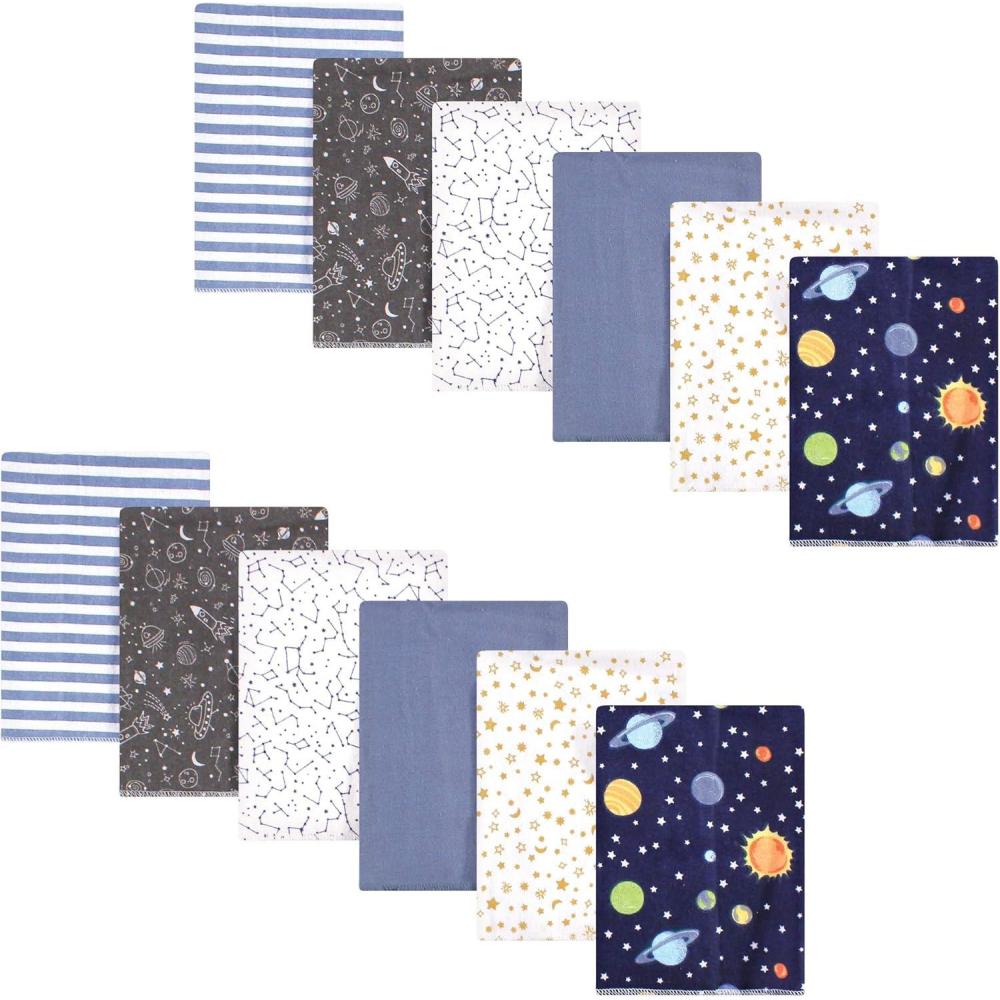 Hudson Baby Unisex Baby Flannel Burp Cloth 12pk, Fun Desert, One Size(Solar System)