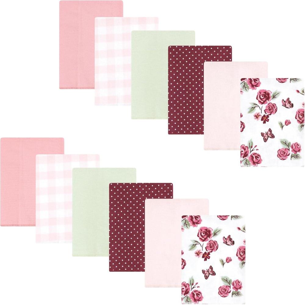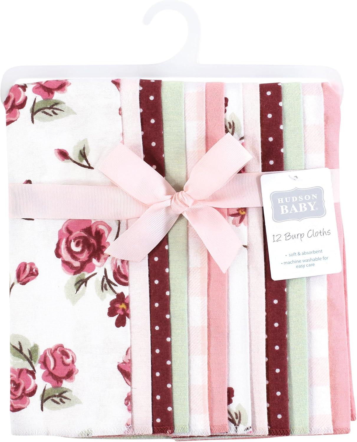 Hudson Baby Unisex Baby Flannel Burp Cloth 12pk, Fun Desert, One Size(Sweet Roses)
