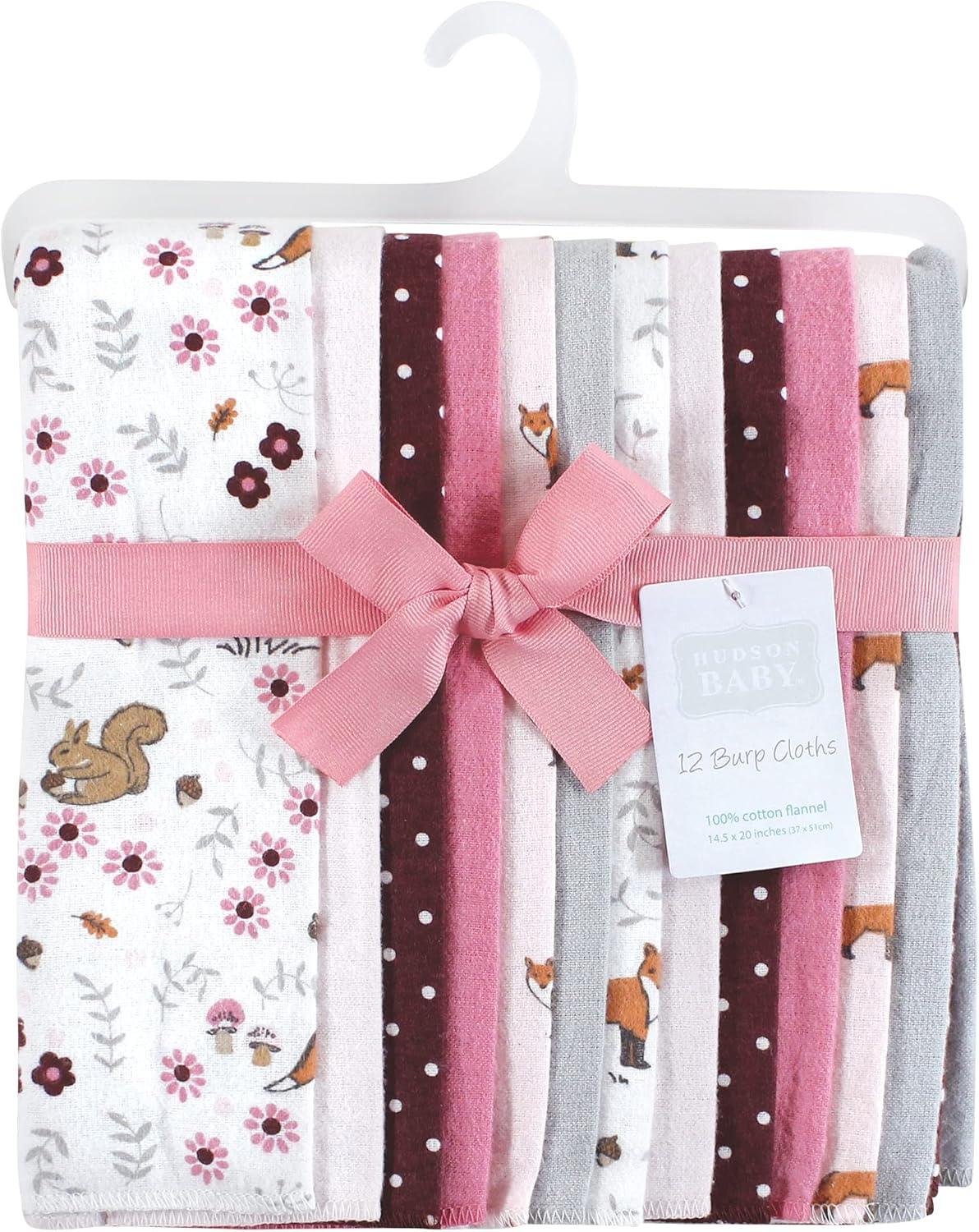 Hudson Baby Unisex Baby Flannel Burp Cloth 12pk, Fun Desert, One Size(Woodland Floral)
