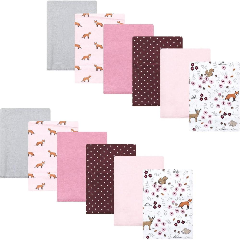 Hudson Baby Unisex Baby Flannel Burp Cloth 12pk, Fun Desert, One Size(Woodland Friends)