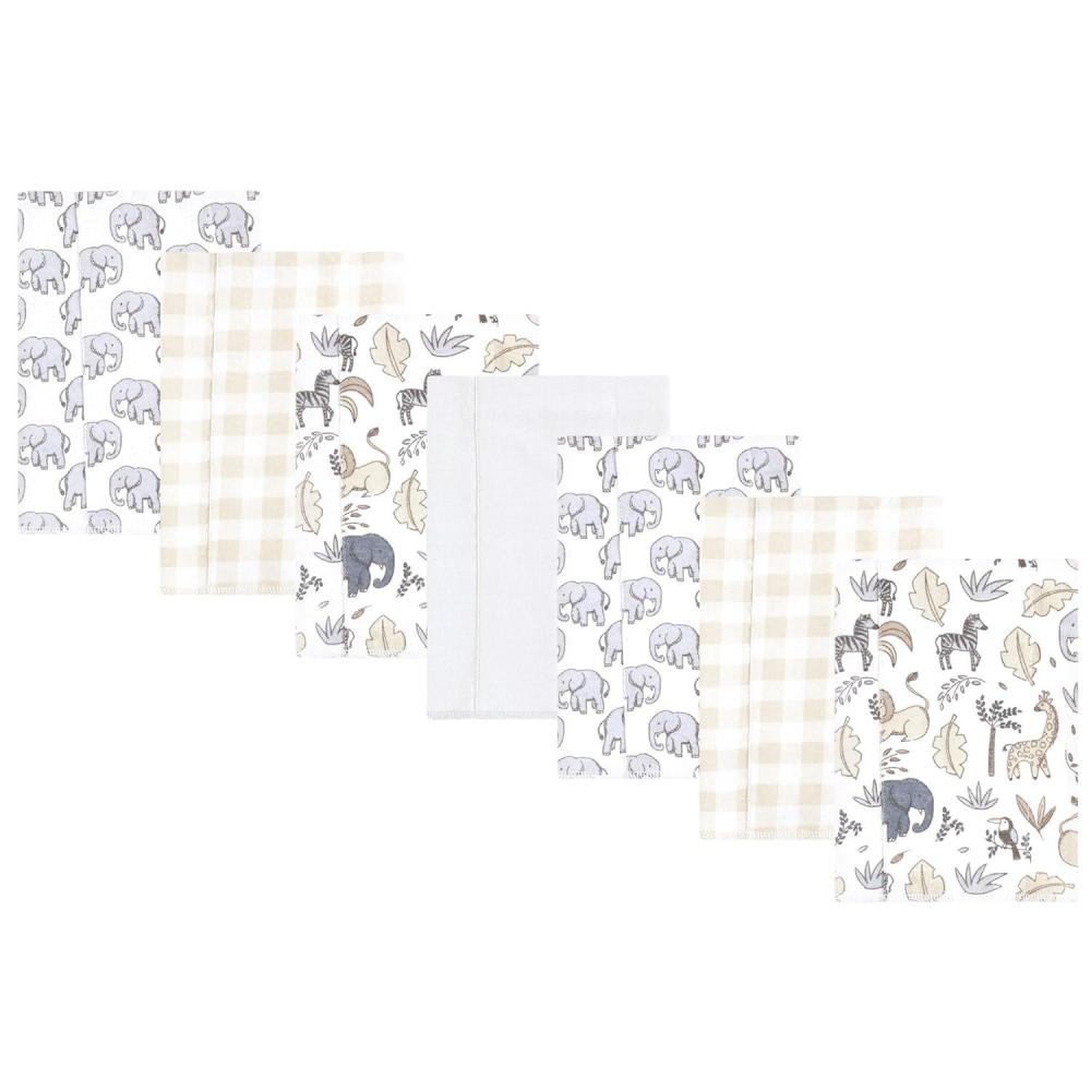 Hudson Baby Unisex Baby Flannel Burp Cloth 7pk, Neutral Safari, One Size