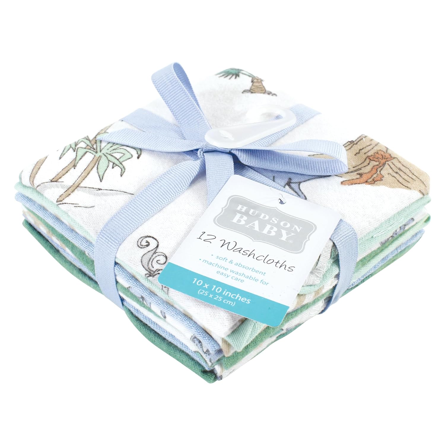 Hudson Baby Unisex Baby Flannel Cotton Washcloths 12-Pack, Farm Friends Grey, One Size(One Size Boy Dino World 12pk)