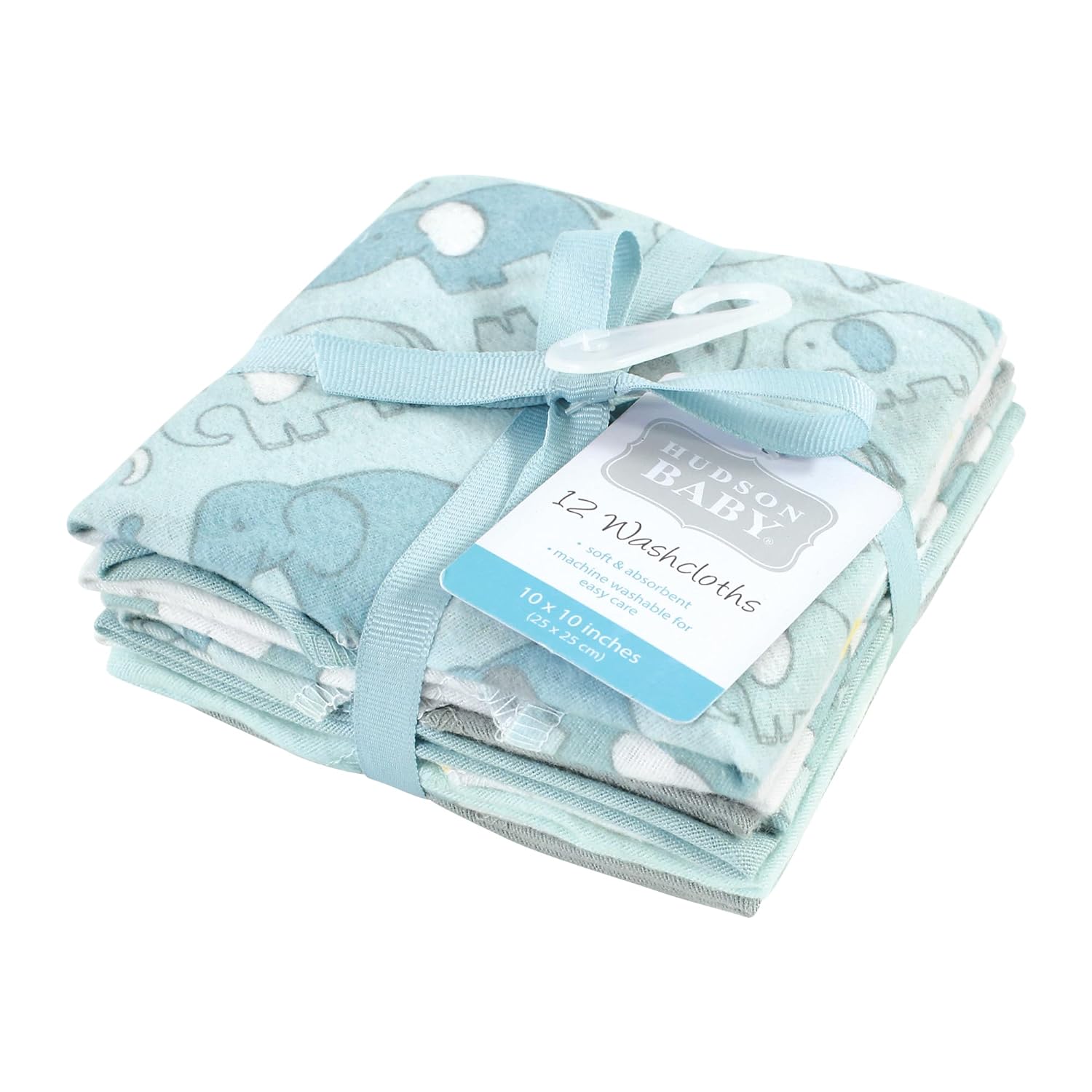 Hudson Baby Unisex Baby Flannel Cotton Washcloths 12-Pack, Farm Friends Grey, One Size(One Size Boy New Elephant 12pk)