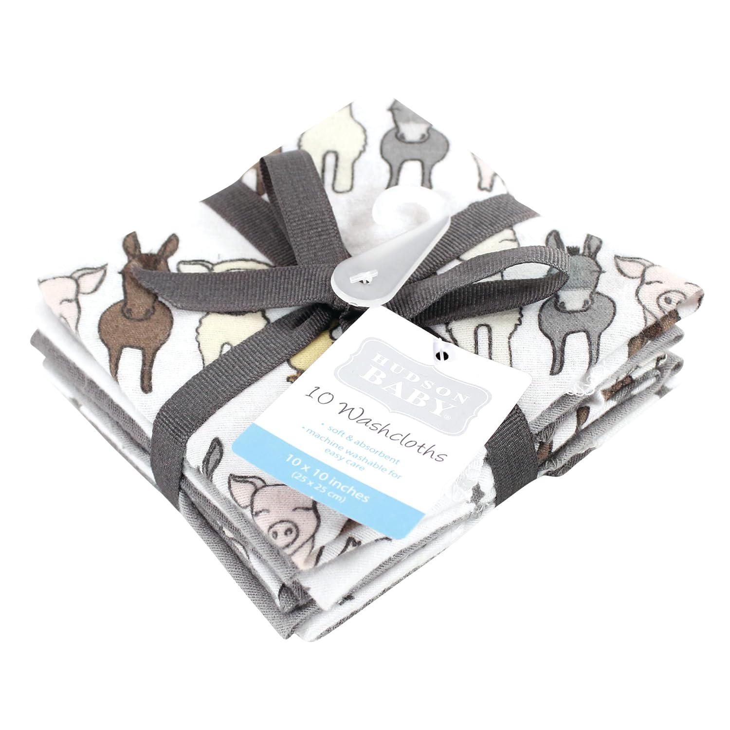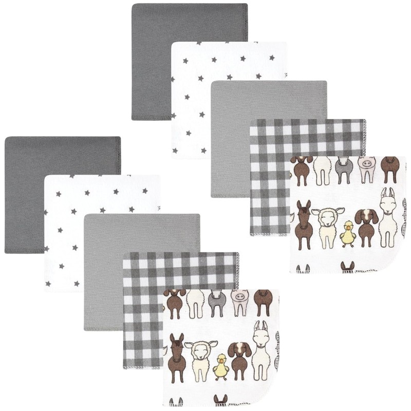 Hudson Baby Unisex Baby Flannel Cotton Washcloths 12-Pack, Farm Friends Grey, One Size(One Size Farm Friends Grey 10-pack)