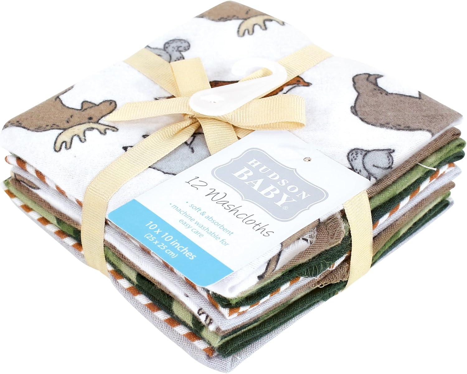 Hudson Baby Unisex Baby Flannel Washcloths, Boy Woodland Pals 12Pk, One Size(Animal Adventure 12 Pack)