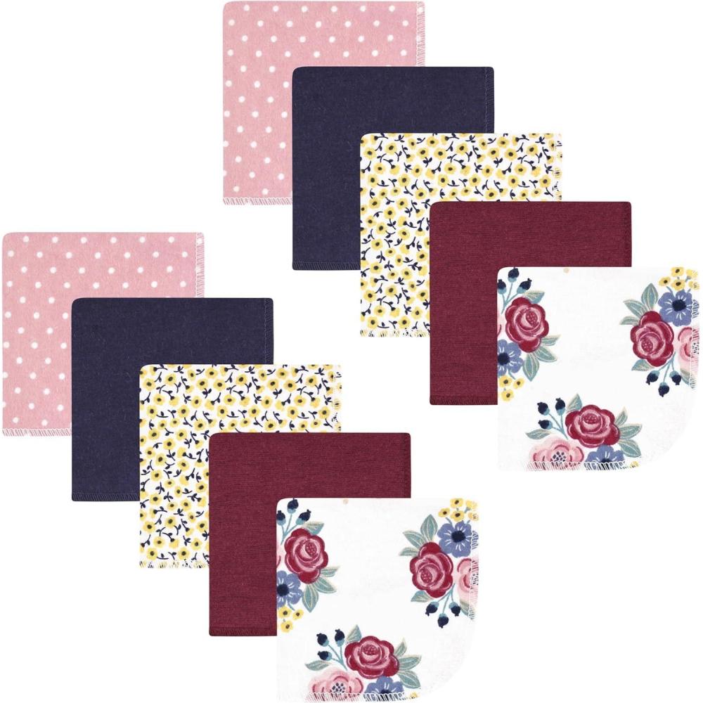 Hudson Baby Unisex Baby Flannel Washcloths, Boy Woodland Pals 12Pk, One Size(Blush Navy Floral 10pk)